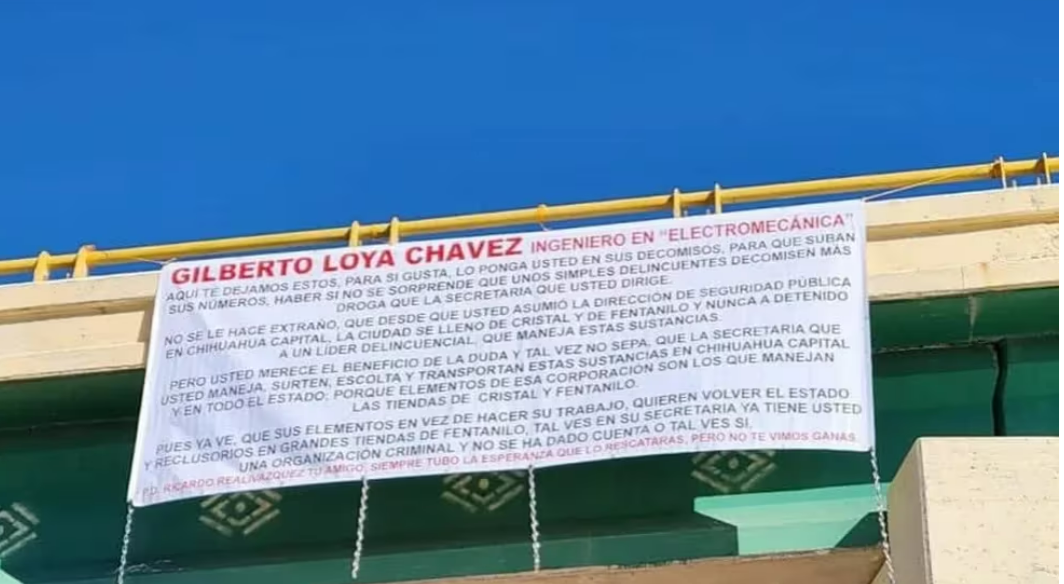 Chihuahua-. El secretario de Seguridad Pública del Estado, Gilberto Loya Chávez, respondió a las acusaciones hechas en su contra, durante el fin de semana, en una manta colgada en un puente en Ciudad Juárez.