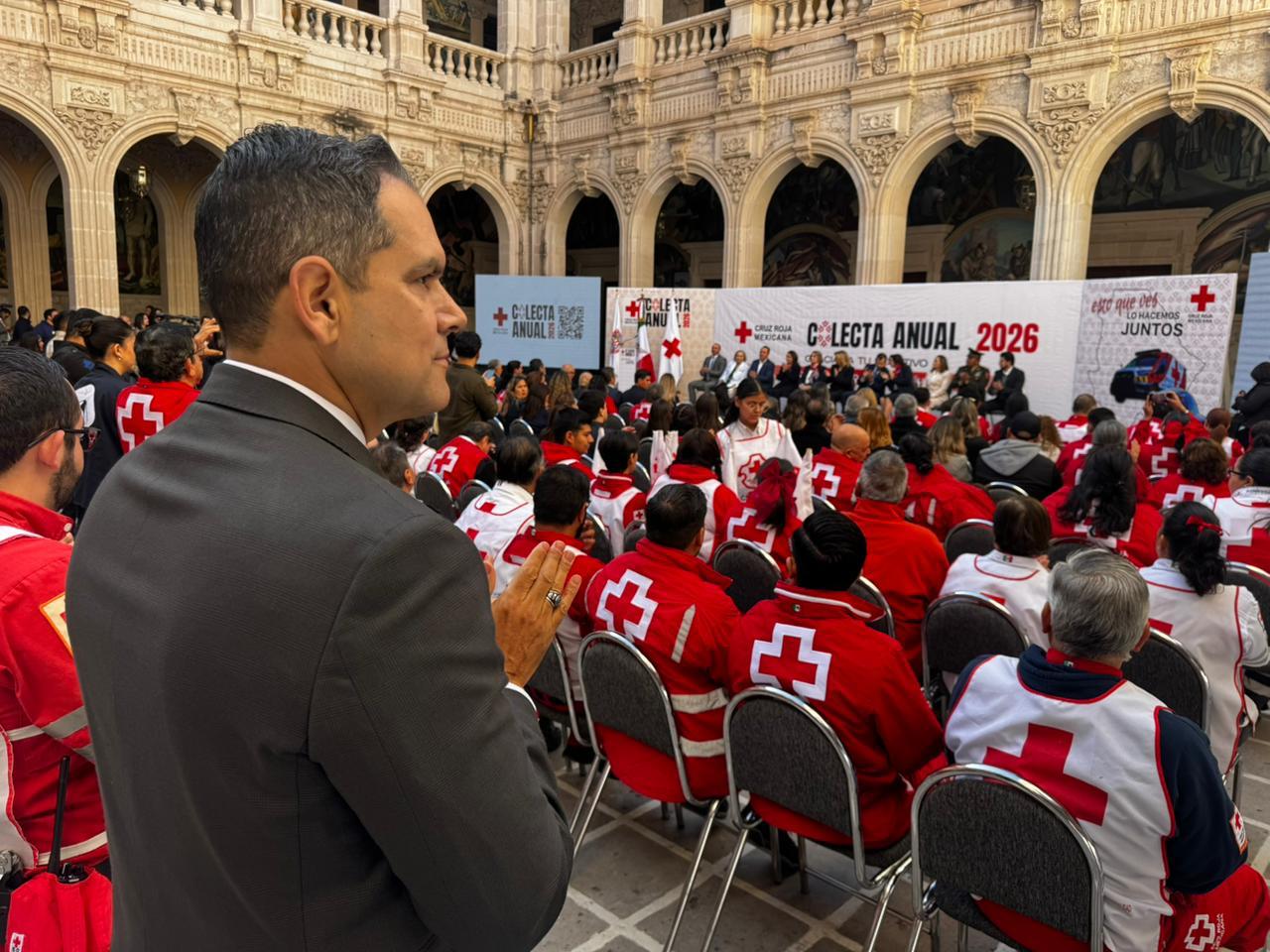 Chihuahua, Chih.- El secretario de Seguridad Pública del Estado, Gilberto Loya Chávez, acompañó a la gobernadora María Eugenia Campos Galván en el arranque de la Colecta Anual 2026 de la Cruz Roja Mexicana, donde se reconoció la vocación de servicio y la labor humanitaria que realiza diariamente su personal y voluntariado.