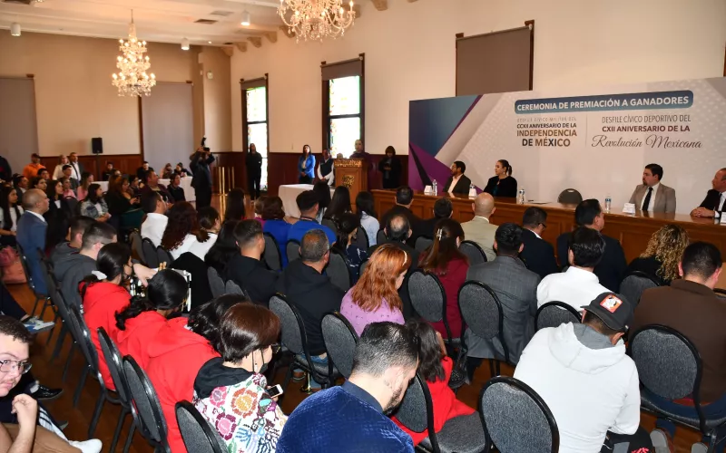 Chihuahua.- La Secretaría de Educación y Deporte (SEyD) llevó a cabo la ceremonia de premiación de los contingentes educativos ganadores de los desfiles cívicos conmemorativos del Inicio del Movimiento de Independencia y de la Revolución Mexicana, efectuados en el año 2022.