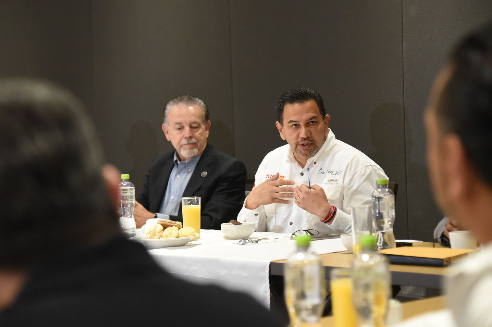 Ciudad Juárez, Chih.- En un encuentro con socios de la Asociación de Transportistas de Carga de Ciudad Juárez, el candidato a la alcaldía por la coalición “Sigamos Haciendo Historia por Chihuahua”, Cruz Pérez Cuéllar, presentó sus propuestas y escuchó las preocupaciones del sector.