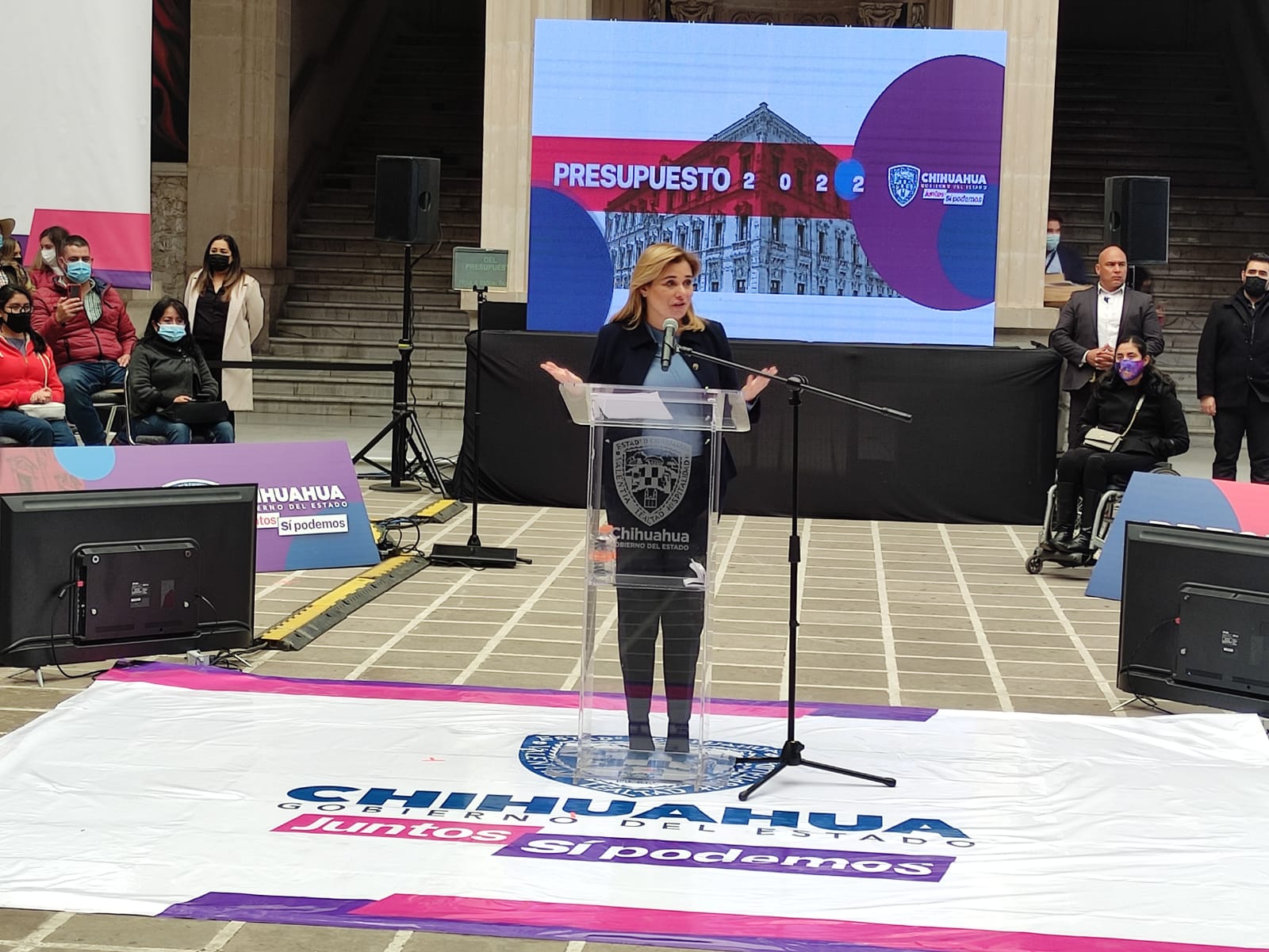 Chihuahua.- La gobernadora de Chihuahua, Maru Campos Galván presentó el paquete económico para el año 2022 que incluye los presupuestos de ingresos y egresos, el cual enviará al Congreso del Estado para su revisión y en su caso aprobación por parte de los legisladores.