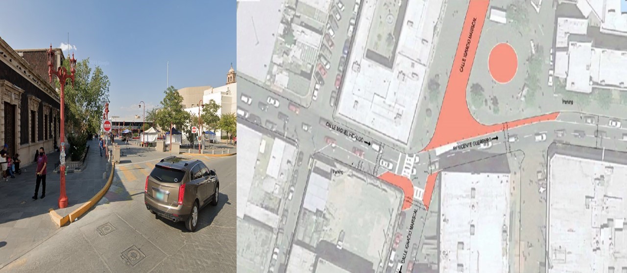 El programa piloto se centrará en este importante crucero ubicado frente a la antigua presidencia municipal y el mercado Cuauhtémoc, donde se realizará la intervención de urbanismo táctico, enfocado en el rediseño vial con cruces peatonales seguros, ampliación de banquetas, arte asfalto y una esquina recreativa con mobiliario urbano.
