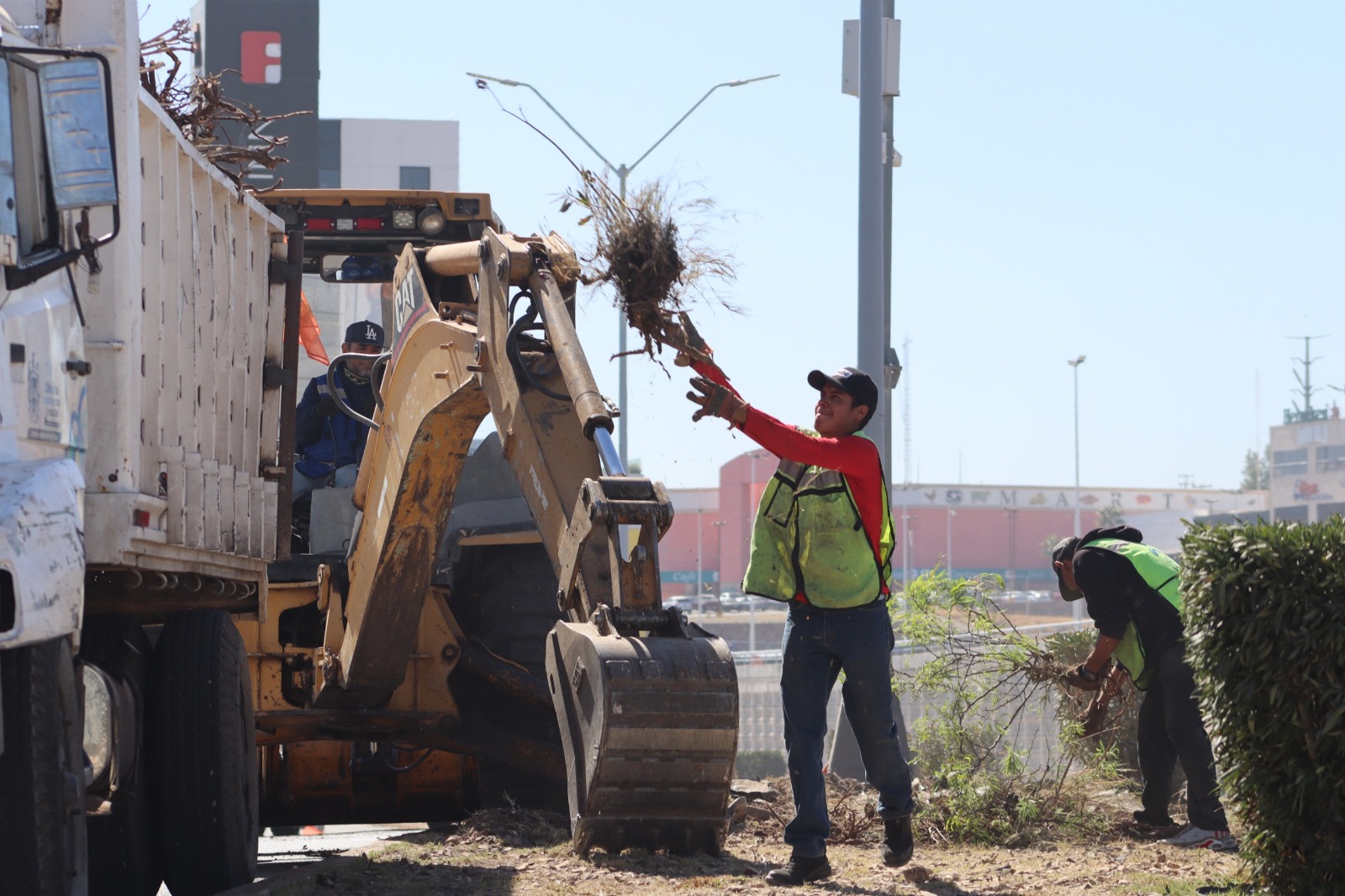 Chihuahua, Chih.- Con el objetivo de mejorar las condiciones de las vialidades y brindar entornos más limpios, seguros y dignos para la ciudadanía, el Gobierno Municipal de Chihuahua, a través de la Dirección de Mantenimiento Urbano, llevó a cabo un Mega Operativo de Limpieza en el Periférico de la Juventud.