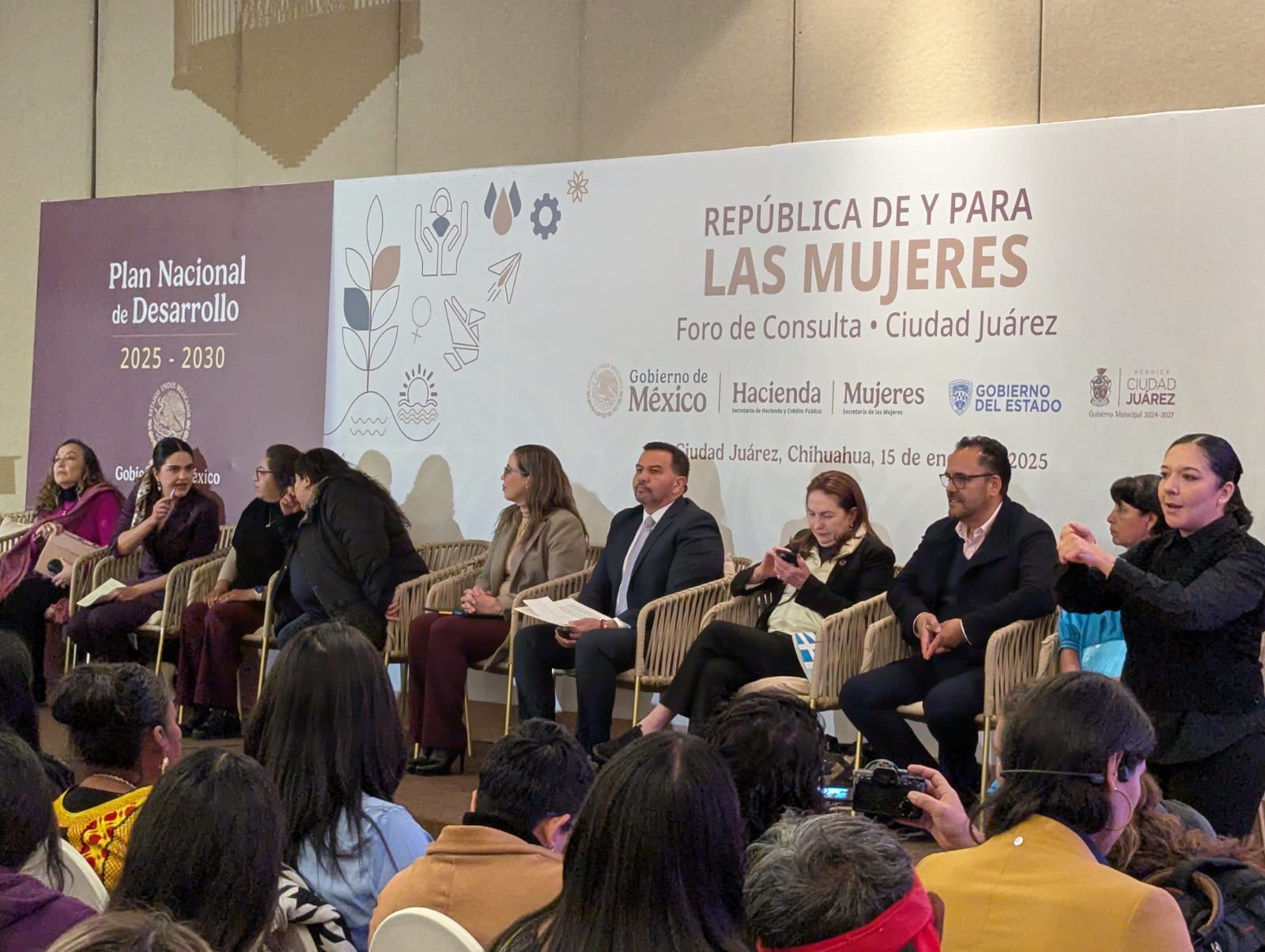 Juárez.- Este miércoles 15 de enero llevan a cabo en Ciudad Juárez el foro “República de y para las Mujeres”, encuentro que tiene la finalidad de escuchar las necesidades y propuestas de la comunidad para conformar el Plan Nacional de Desarrollo 2025-2030 del Gobierno Federal.