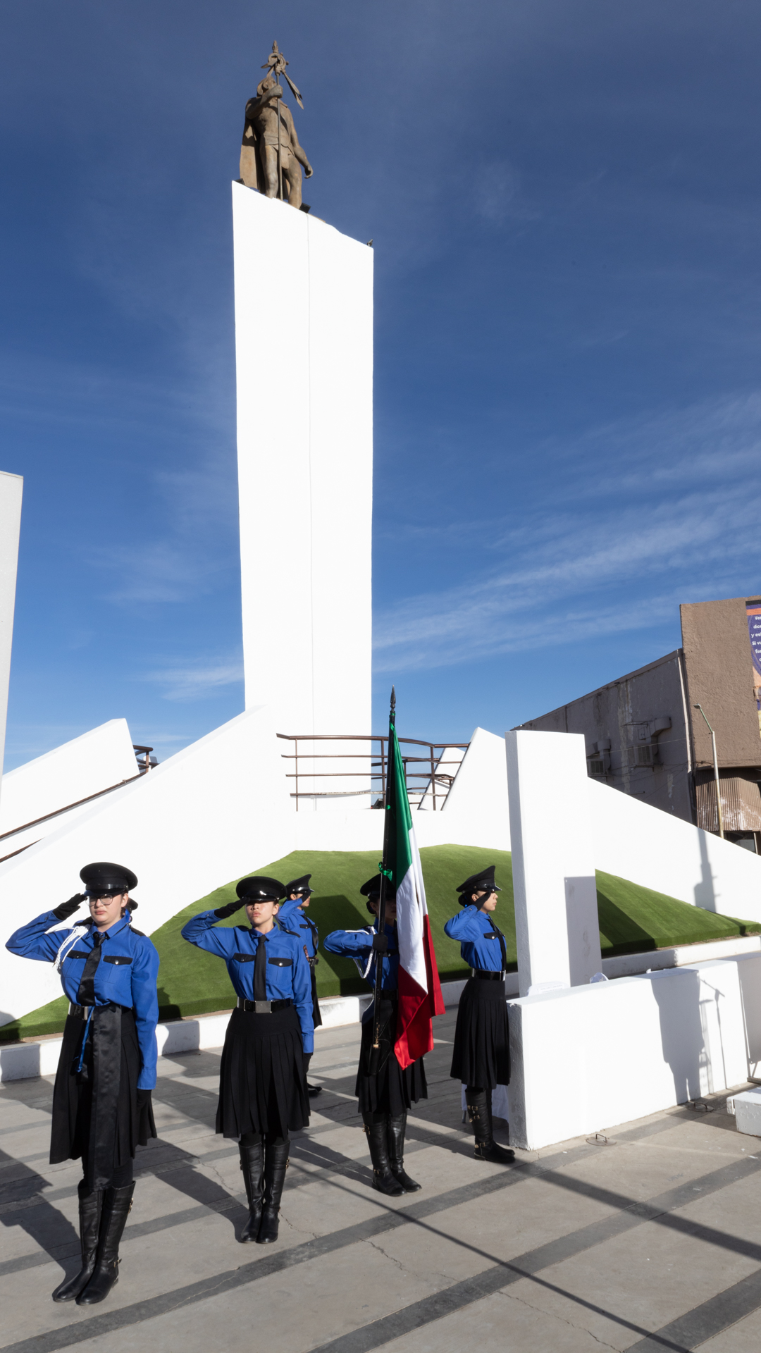 Cuauhtémoc.- Autoridades municipales y alumnos de primaria, participaron en la ceremonia cívica con motivo del 498° aniversario luctuoso de Cuauhtémoc, al pie del emblemático monumento del Último Emperador Azteca, ícono representativo de esta ciudad.