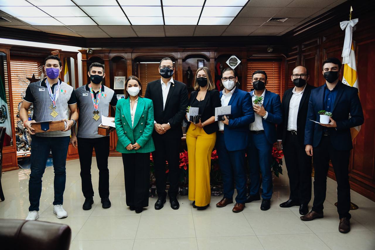 Recibe Alcalde a ganadores internacionales de ráquetbol y maratón de finanzas