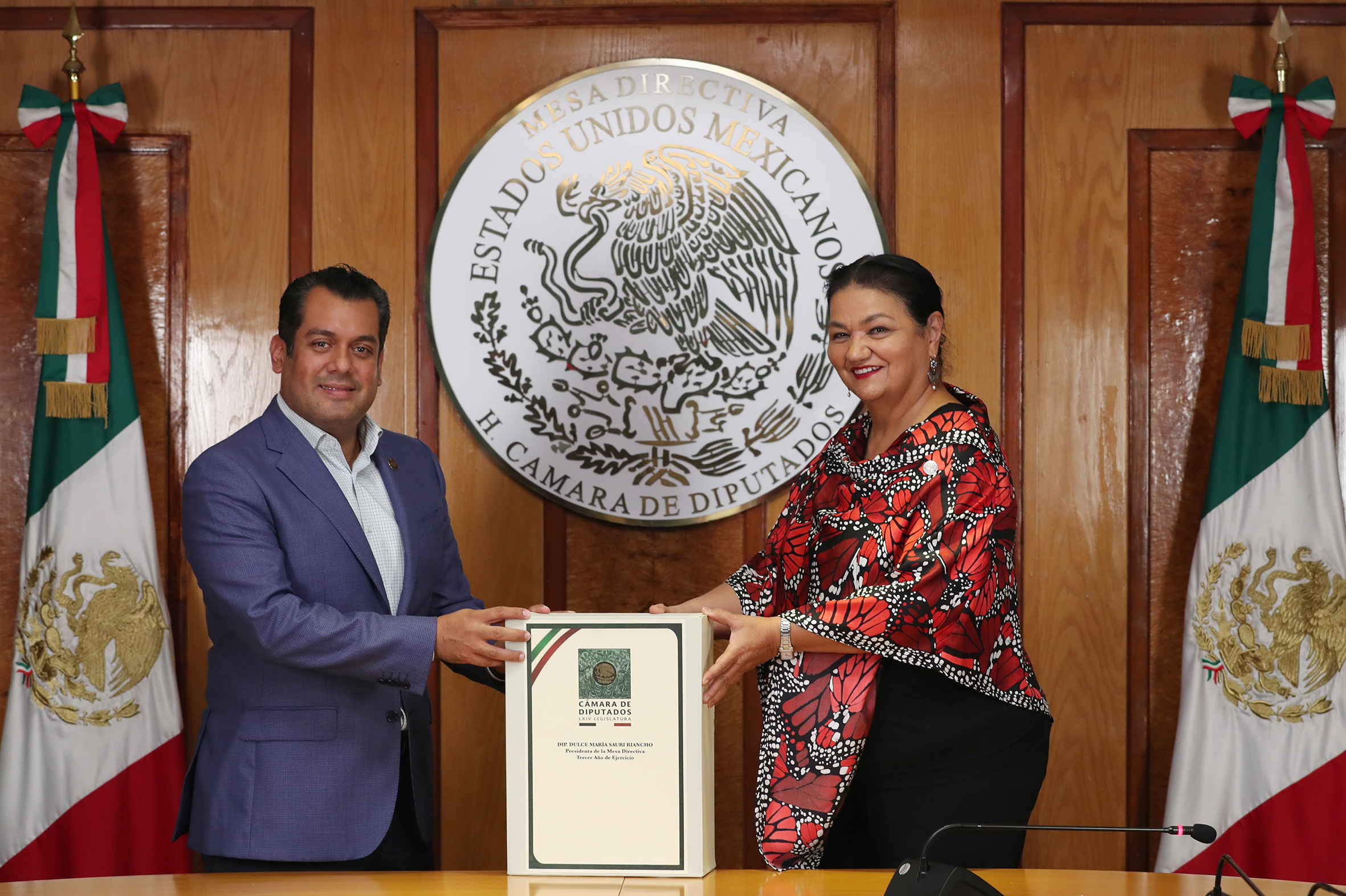 México.- En acto protocolario, el diputado Sergio Carlos Gutiérrez Luna, nuevo presidente de la Cámara de Diputados, recibió de manera simbólica de su antecesora, la diputada Dulce María Sauri Riancho, las oficinas de la Mesa Directiva y diversos documentos de los trabajos de la 64 Legislatura, que concluyó sus trabajos el 31 de agosto.