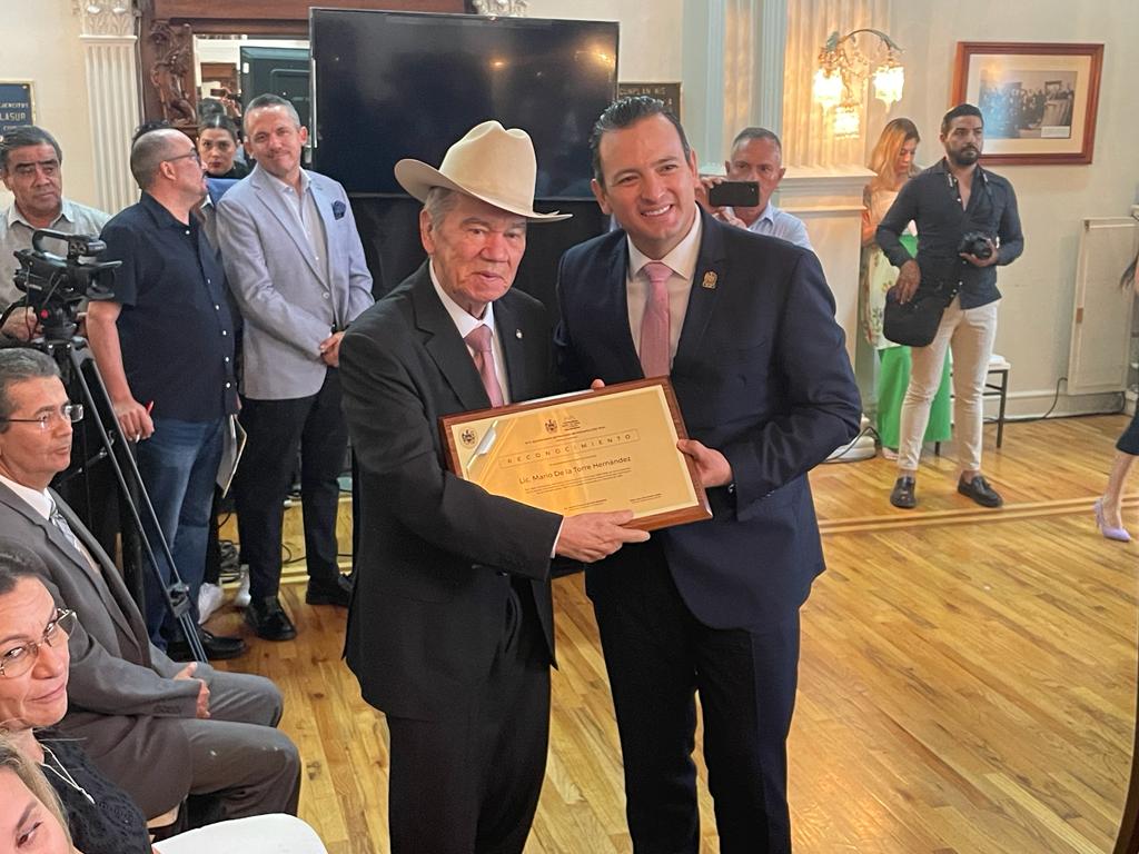 Chihuahua.- En sesión de cabildo se entregó un reconocimiento a quien hubiera sido el ex presidente municipal de Chihuahua de 1986 a 1989, Don Mario de la Torre Hernández, pues se recordó que fue él quien volvió a comprar el edificio de la actual presidencia a fin de que volviera a ser propiedad del municipio después de haber estado en manos de particulares durante más de un siglo.