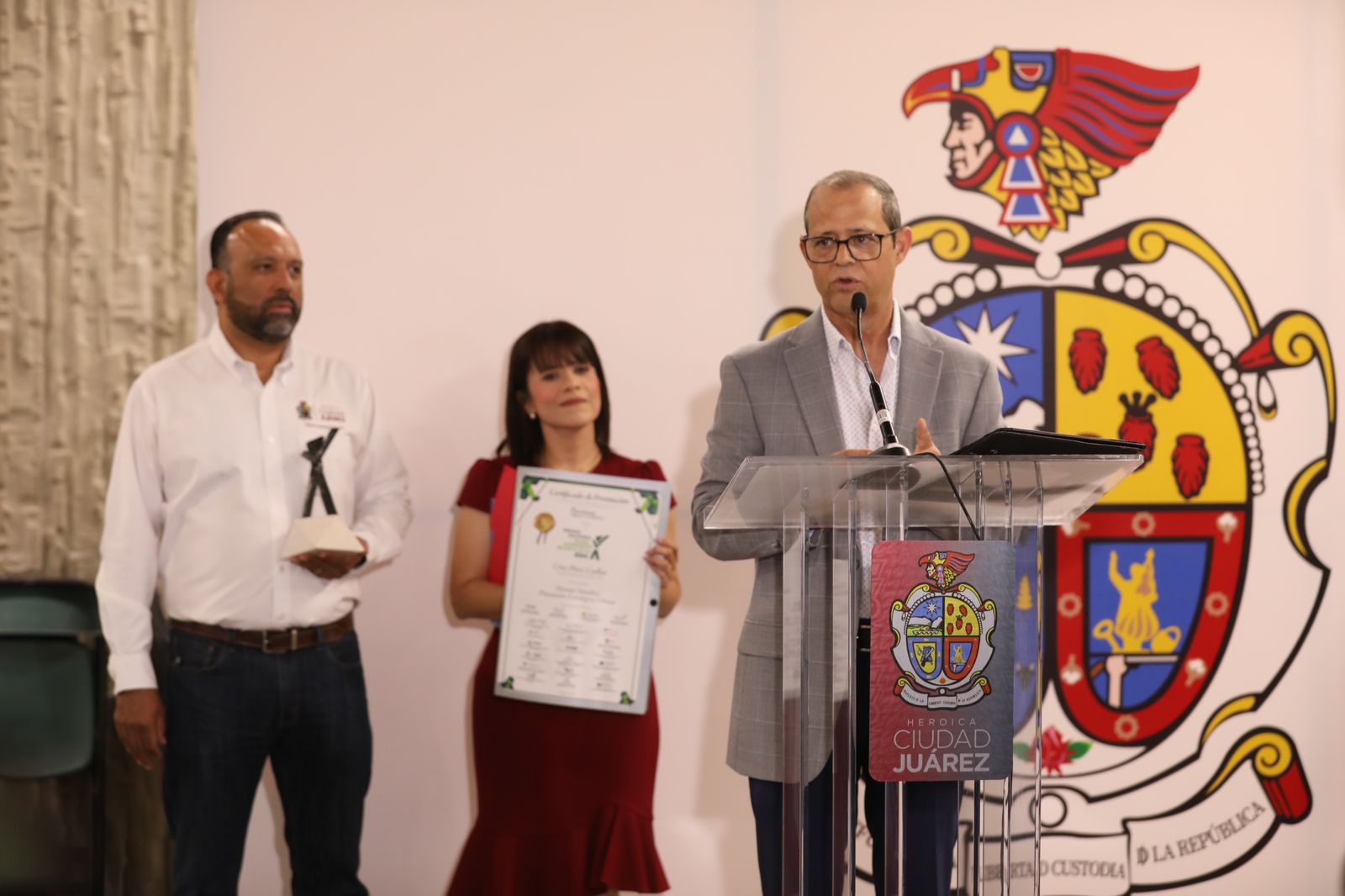Enrique Licón, director de Administración y Control de Proyectos, expresó “estamos muy contentos de estar presentes en la entrega de este importante reconocimiento que se le dio a Cruz Pérez Cuéllar como presidente municipal de Ciudad Juárez, en donde el premio que se otorga es un galardón temático en planeación estratégica urbana, el proyecto es Visión Juárez 2040”.