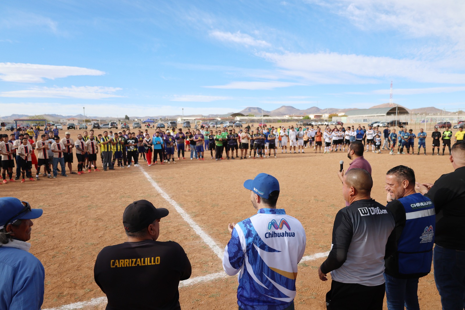 El director del IMCFD, Juan José Abdo Fierro, felicitó a los promotores Eduardo Guerra y Ramón Santos por dar inicio a la “Liga Chihuahua” infantil y juvenil en la unidad Carrizalillo, que será un importante semillero en cinco categorías de fútbol 11, impulsando la formación de nuevos talentos y una mayor convivencia en la escena deportiva.