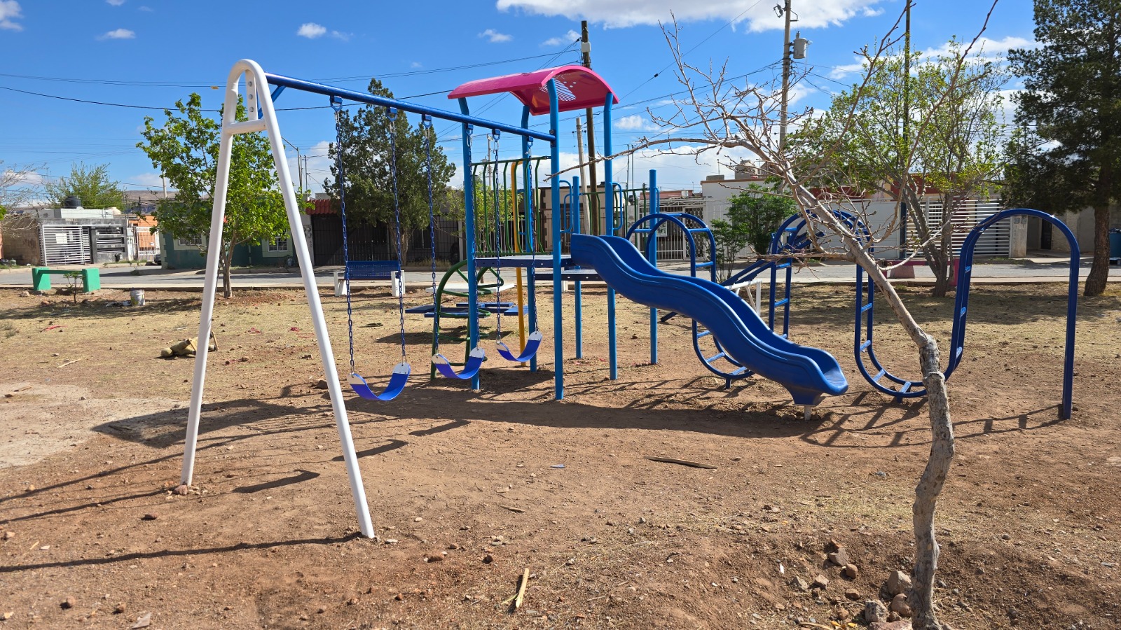 En este parque se instalaron un módulo infantil, dos bancas y una mesa tipo picnic con capacidad para ocho personas, atendiendo el reporte ciudadano.