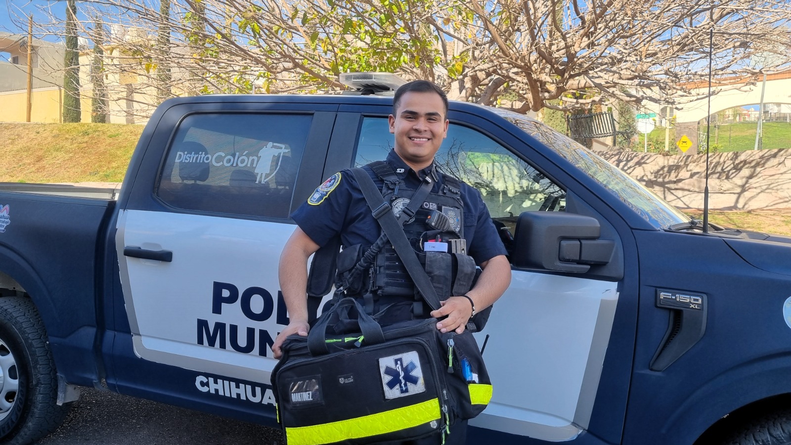 Por su parte, el TUM Omar Alejandro Gardea Aguirre, con seis años como bombero dentro de la corporación, señaló que entre las atenciones más frecuentes se encuentran personas intoxicadas por monóxido de carbono, con quemaduras de distintos grados o con traumatismos derivados de accidentes vehiculares. Parte de su jornada la cubre a bordo de la Patrulla Médica de la corporación, donde aplica sus conocimientos para apoyar tanto a compañeros policías como a bomberos en intervenciones de emergencia.