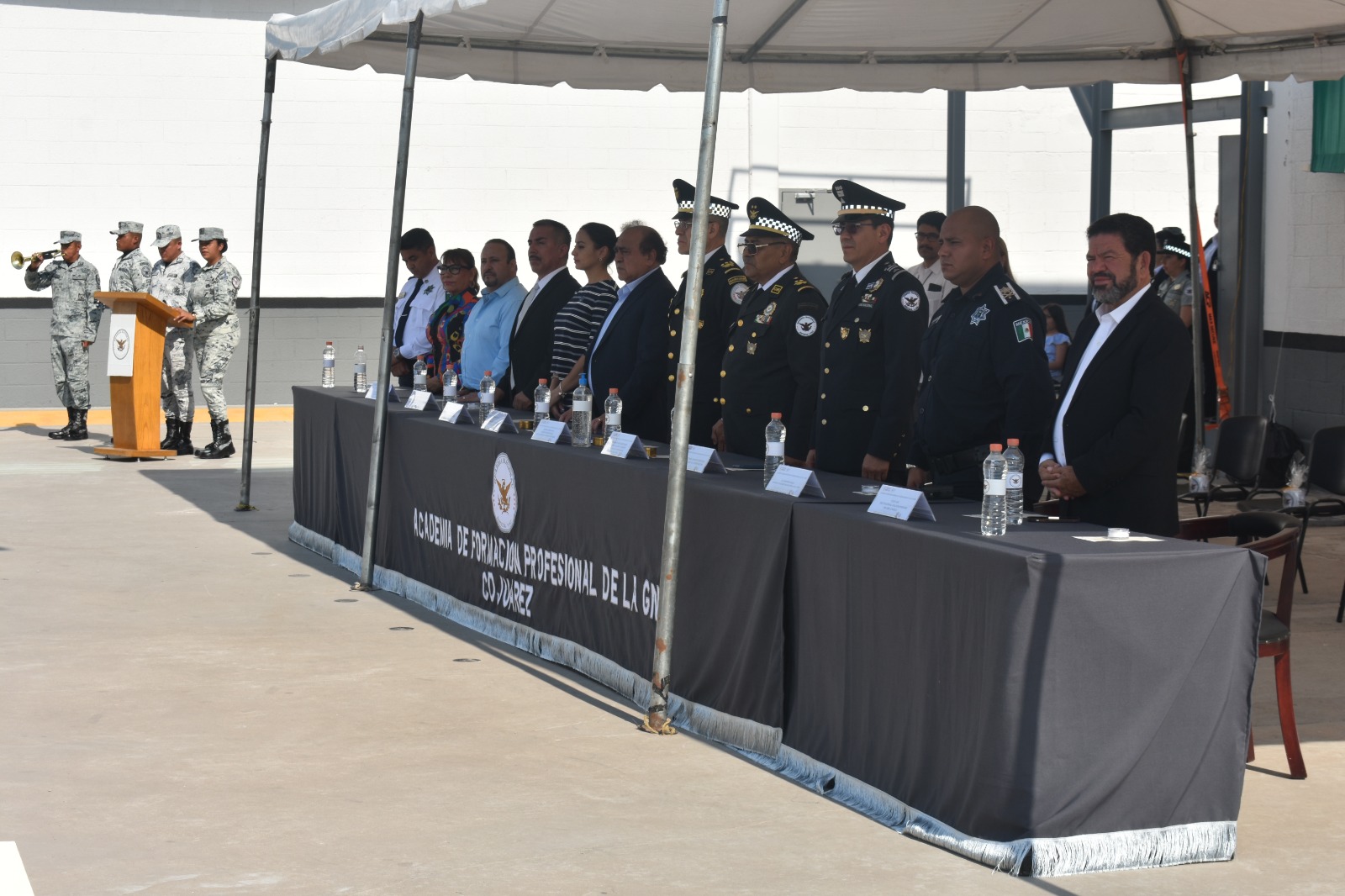 La ceremonia fue encabezada por el Comisario General, Gerardo Wolburg, Director General de Desarrollo Profesional de la Guardia Nacional y el Comisario Jefe, Ramón Juárez Bermejo, Director de la Academia de Formación Profesional de la Guardia Nacional en Ciudad Juárez.
