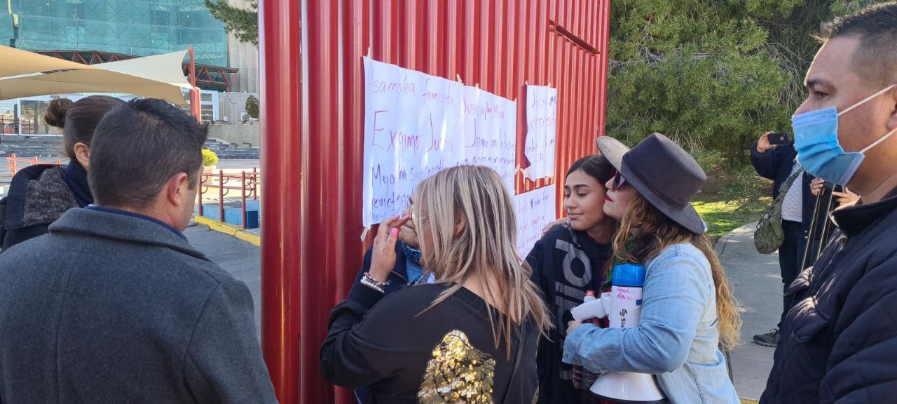 A la protesta arribó la joven camarguense Mya Naomi, acompañada por su familia y personal del Instituto Chihuahuense de la Mujer, ya que buscarán a la juez para pedirle y exigirle que no se otorgue ese amparo a favor de su agresor.