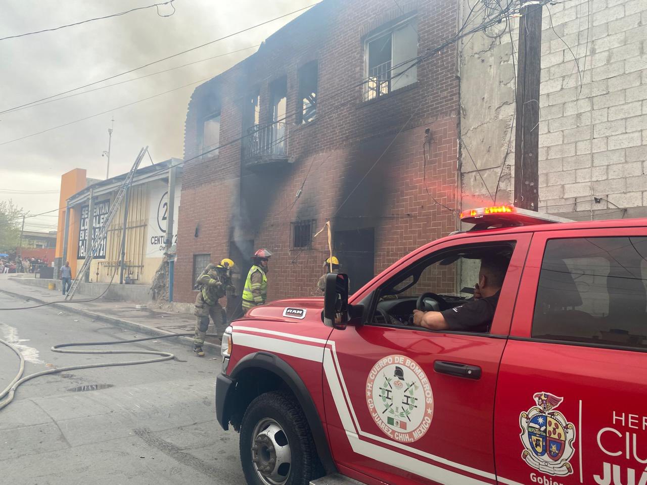 Juárez.- Elementos operativos de la dependencia atendieron esta tarde un incendio registrado en un edificio abandonado, ubicado en el cruce de Ignacio Mariscal y Donato Guerra, en la zona centro.