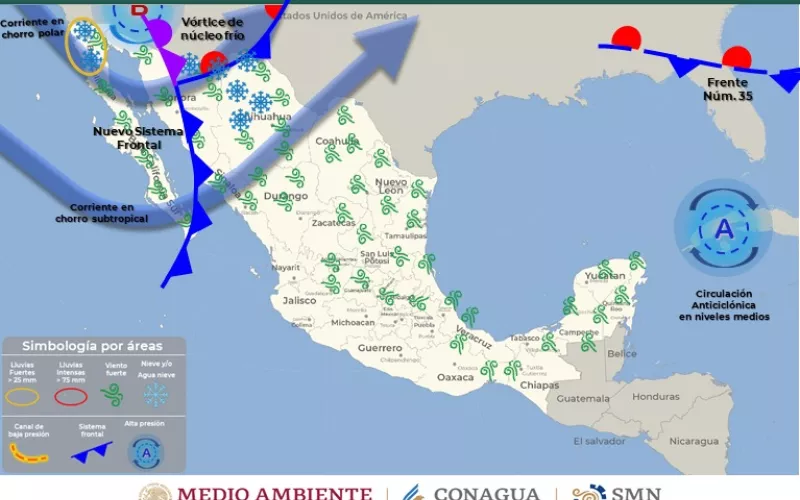 Por otra parte, durante la mañana del domingo se podrían tener chubascos de nieve Ocampo, Bocoyna y Janos, así como de precipitaciones en forma de lluvia puntualmente moderadas a fuertes en municipios como Batopilas, Urique, Guazapares y Maguarichi.
