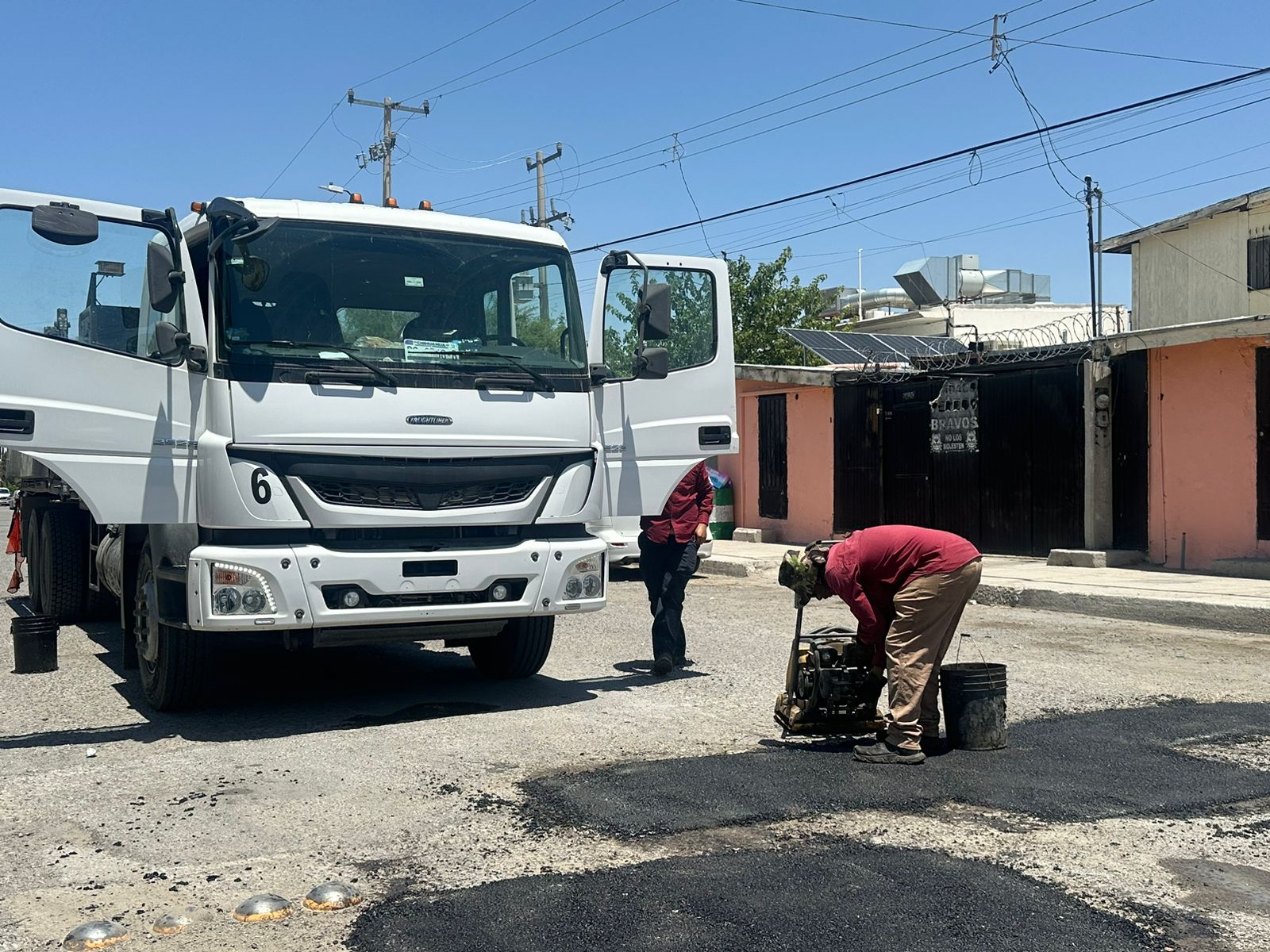 Juárez.- Como parte del programa permanente en la atención de calles por los distintos sectores de la ciudad, la Dirección General de Obras Públicas, trabajó en arterias de la colonia La Cuesta, en donde fueron tapados 122 baches durante la semana pasada.