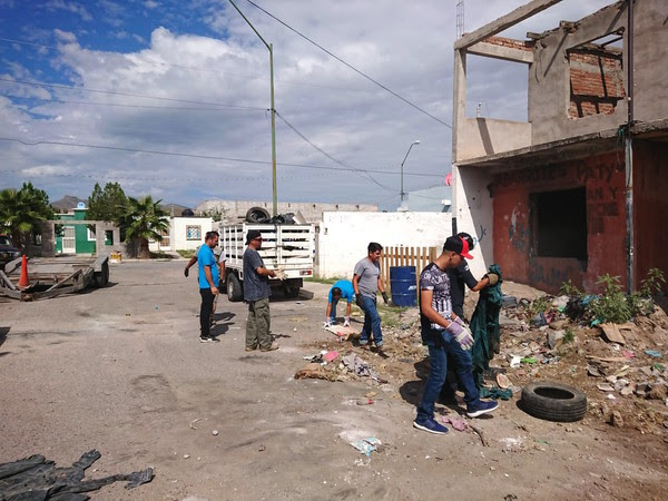 Luego de varias horas de trabajo, se retiraron 4 camiones de volteo llenos de basura y escombro, logrando liberar de basura el inmueble señalado mediante una denuncia ciudadana que señalaba el lugar como un lugar de riesgo tanto para la salud, como para la seguridad de los residentes de esta comunidad ubicada al norte de la ciudad.