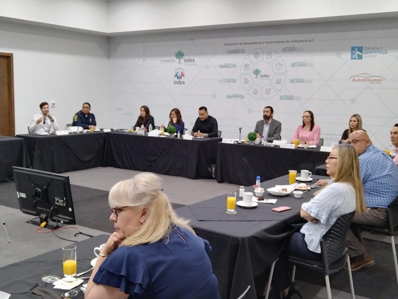 Chihuahua.- Para garantizar la seguridad de más de 20 mil empleados del sector manufacturero de la ciudad, principalmente durante los horarios de entrada y salida a las empresas, el Gobierno Municipal a través de la Dirección de Seguridad Pública y la Asociación de Maquiladoras y Exportadoras de Chihuahua (INDEX), se alían para iniciar el proyecto denominado “Ruta Segura”, para lo cual sostuvieron una reunión con la asistencia de los principales representantes de ambas instancias.