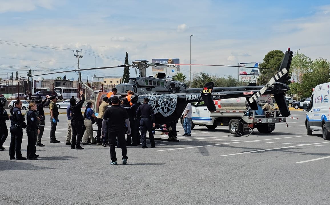 Chihuahua.- Los tres agentes de la Policía Estatal lesionados tras un enfrentamiento con civiles armados en Moris, fueron trasladados vía aérea desde el municipio de Ocampo mediante un fuerte dispositivo de seguridad que se llevó a cabo en el estacionamiento del Centro de Convenciones Expo Chihuahua.