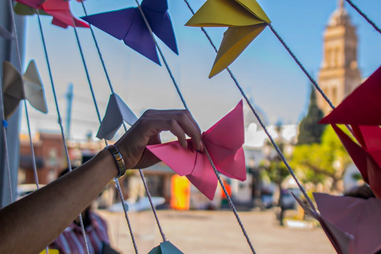 Meoqui, Chih.- En el marco del Día Mundial de la Poesía, el Gobierno Municipal de Meoqui lanzó una dinámica cultural que transforma el espacio público en una experiencia artística cercana: “Versos al Aire”, una exposición de cerca de 400 poemas en forma de mariposa instalados en los Portales de la Presidencia Municipal.