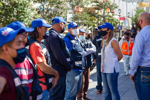 Visita Alcaldesa cuadrillas que mantienen limpio el Centro Histórico
