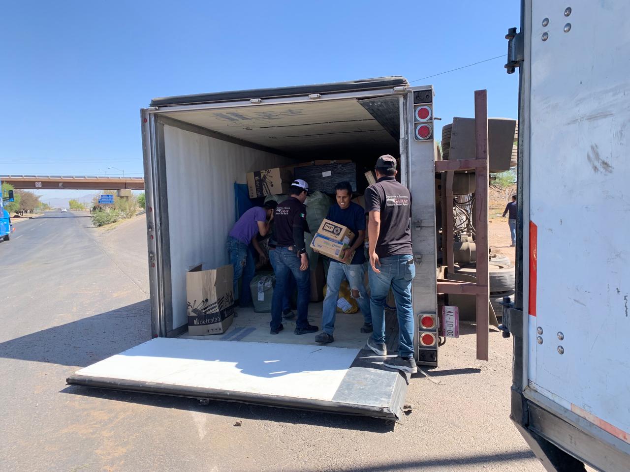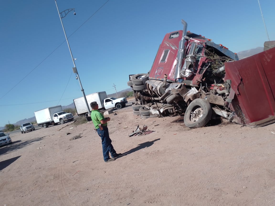 Vuelca trailer por la puerta de Chihuahua, extreme precauciones