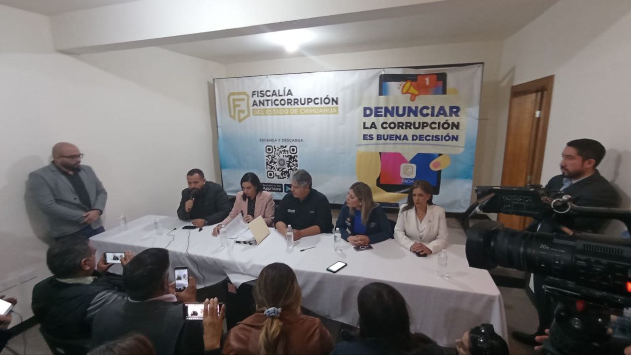 Chihuahua.- La diputada Daniela Álvarez, Marisela Terrazas, Gabriel García Cantú, el presidente del Comité Directivo Estatal, Gabriel Díaz, así como la presidenta del Comité Directivo Municipal del PAN en Juárez, Xóchitl Contreras, acudieron a la Fiscalía Anticorrupción para presentar una denuncia en contra del alcalde Cruz Pérez Cuéllar.