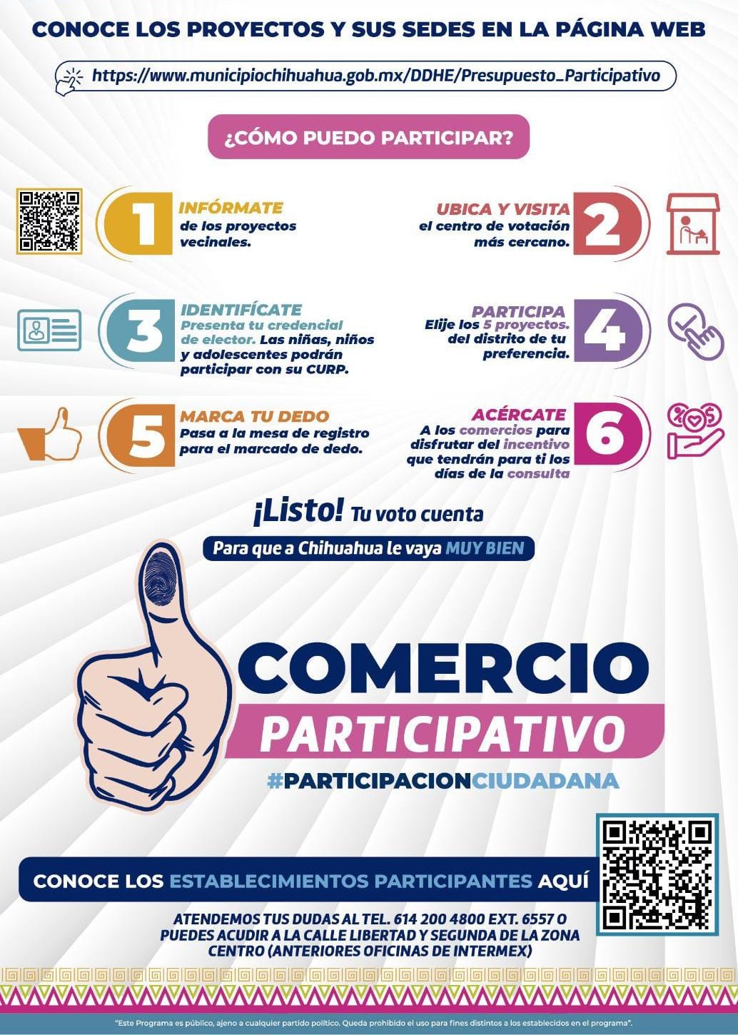 Chihuahua, Chih.- El Gobierno Municipal, a través de la Coordinación de Participación Ciudadana, explica más sobre el Presupuesto Participativo e invita a participar en la consulta que será este 15 y 16 de febrero.