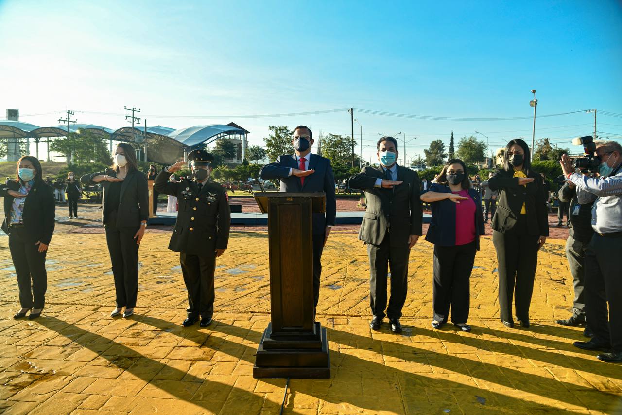 Es por ello, que esta mañana, en la explanada del Palomar, se hizo la bandera nacional por parte de autoridades militares y políticas de la ciudad. Diana azucena acosta, regidora; Mónica Herrera, titular de la Dirección de Desarrollo Humano y Educación; Georgina Bujanda Ríos, presidenta del Congreso del Estado; Miguel Ángel Valdez, en representación de la Secretaría de Educación y Deporte del Gobierno del Estado y el teniente coronel de infantería, Alejandro Ulises Flores, estuvieron presentes en el izamiento que estuvo presidido por el alcalde de Chihuahua Marco Bonilla.