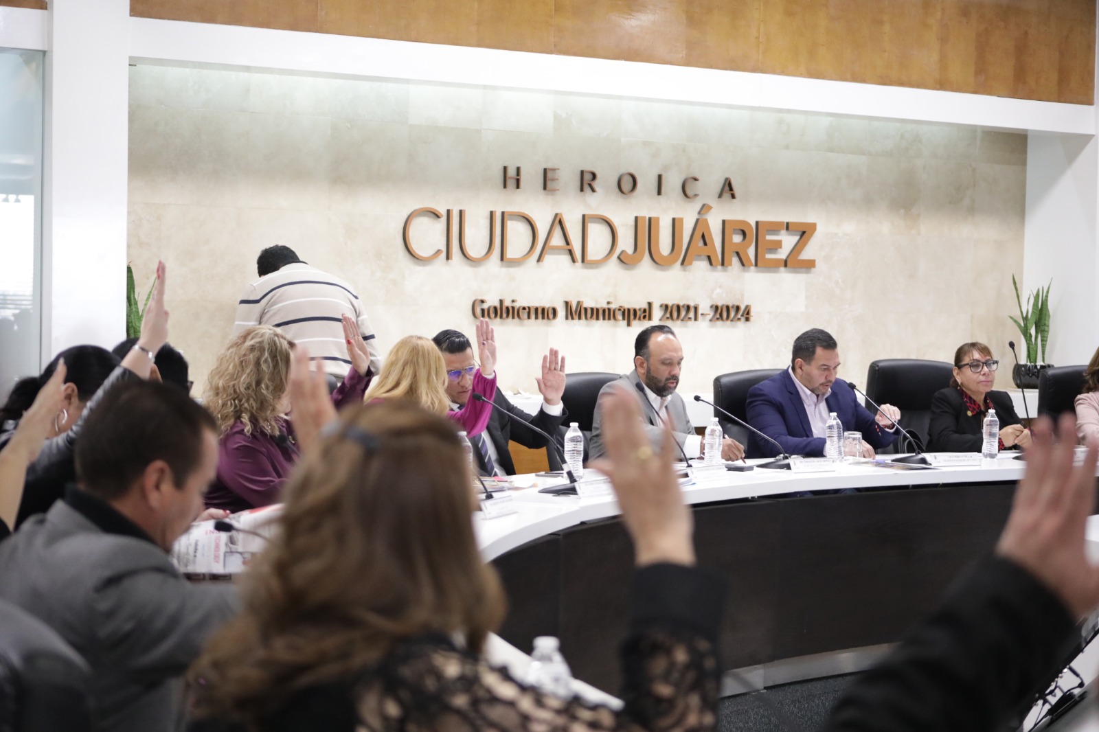 En esta sesión se aprobó la propuesta del regidor Héctor Hugo Avitia Arellanes, para emitir un exhorto al director ejecutivo de la Junta Municipal de Agua y Saneamiento de Juárez (JMAS), Sergio Nevárez Rodríguez en relación a los remates de propiedades que se están llevando a cabo en diversas colonias.