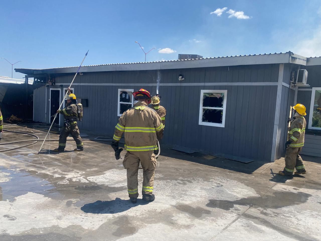 Ciudad Juárez, Chih.- La Dirección General de Protección Civil, a través del Departamento de Bomberos, atendió un incendio registrado en un cuarto de aproximadamente 5 x 12 metros habilitado como oficinas, así como en un área separada que funcionaba como bodega de refacciones, dentro de una empresa de transporte y taller mecánico ubicada en el kilómetro 29 de la carretera a Casas Grandes.