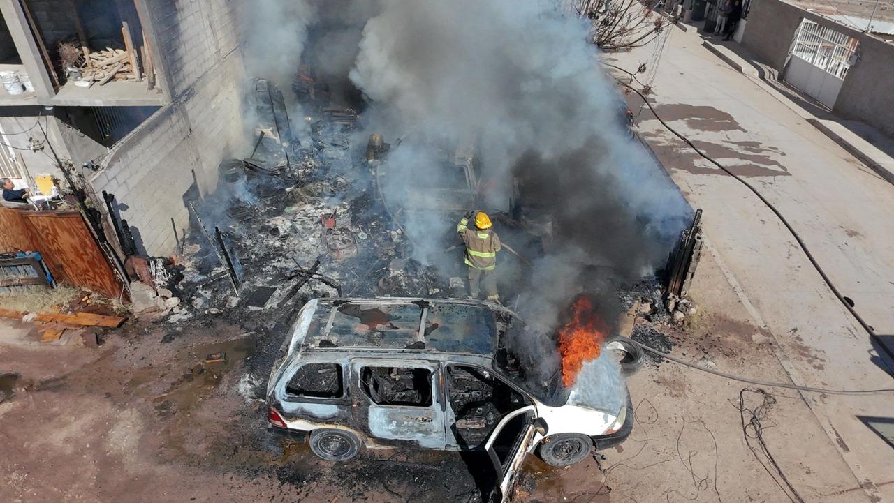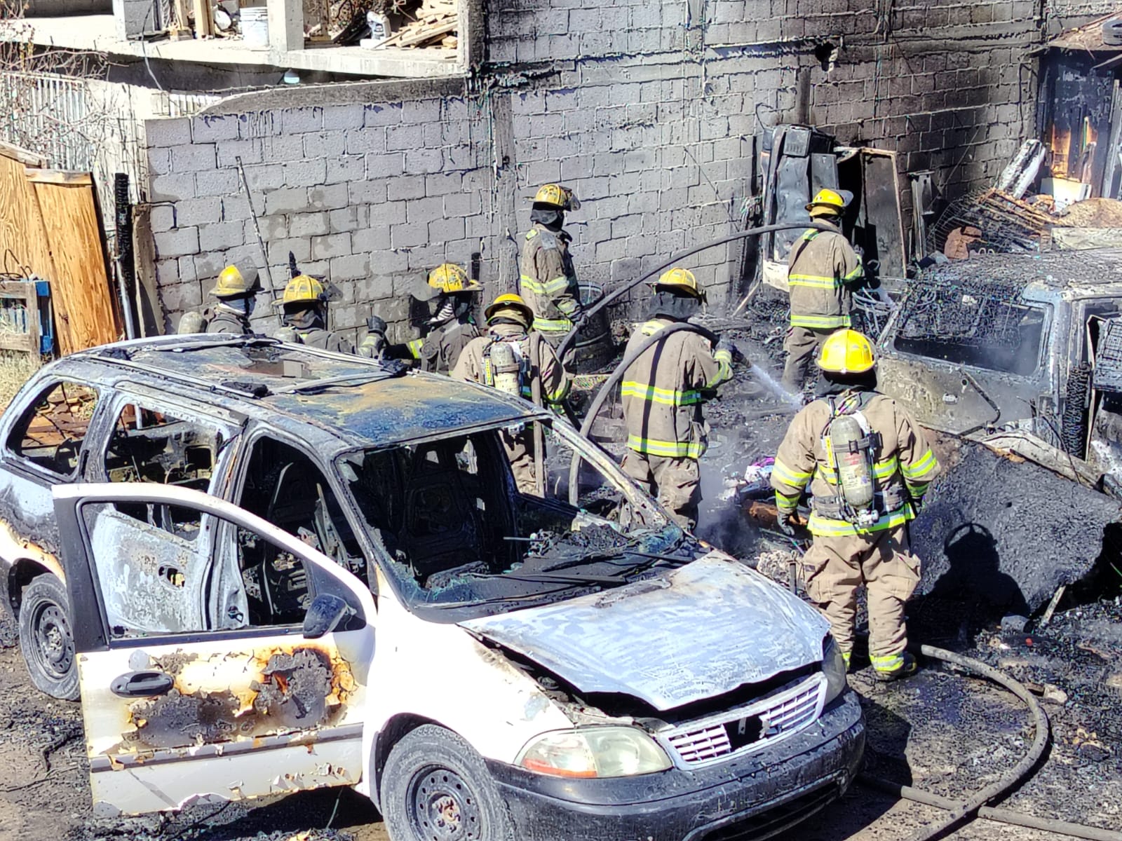 Consume incendio dos vehículos y frente de una vivienda en Juárez