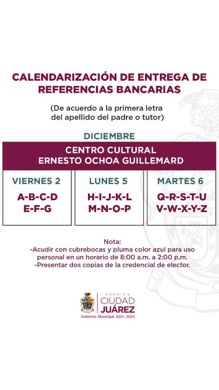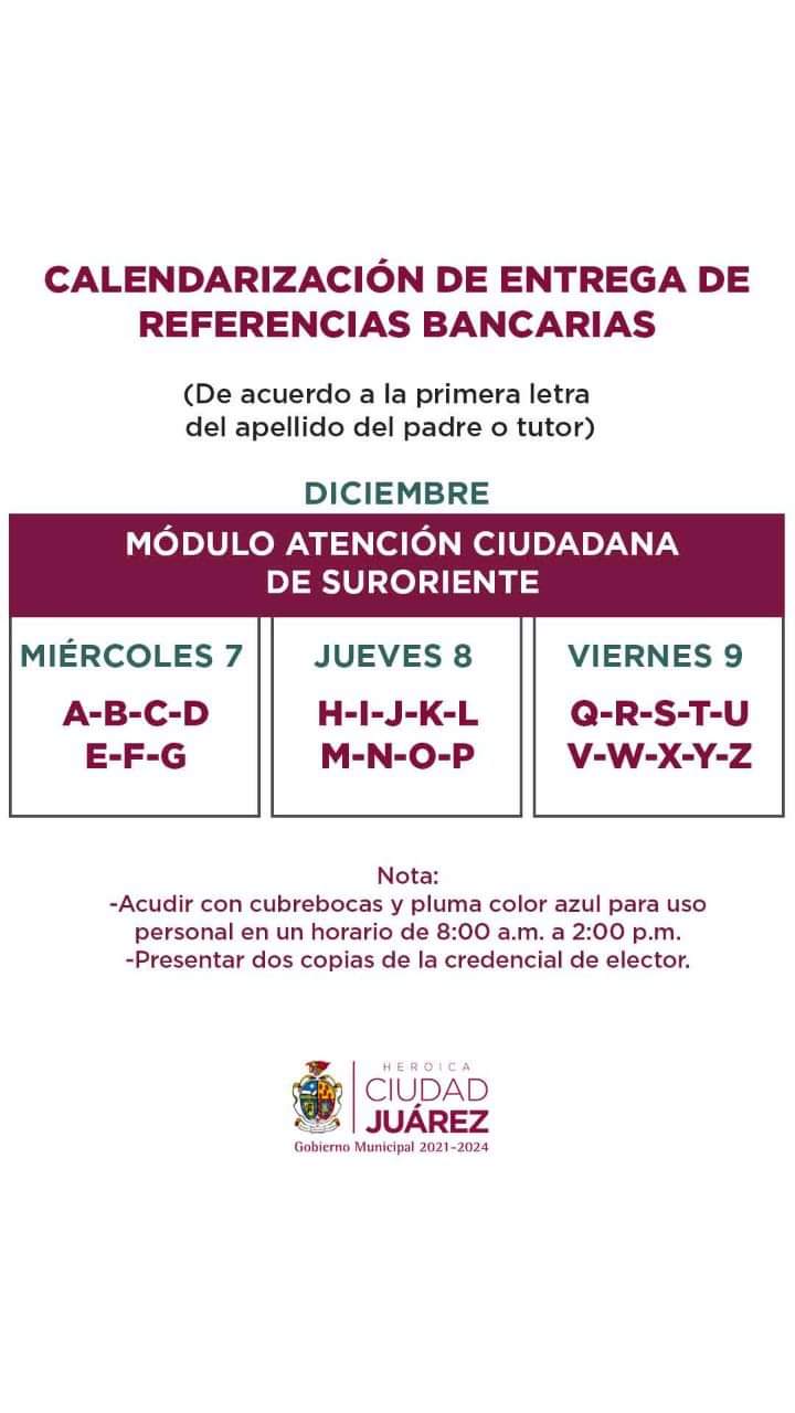 Las referencias bancarias forman parte del Programa de Becas Escolares 2022 que otorga el Gobierno Municipal, a través de la Dirección de Educación, a estudiantes de nivel básico y media superior de escuelas públicas, así como a alumnos con barreras para el aprendizaje y la participación con diagnóstico médico, y en situación de vulnerabilidad.