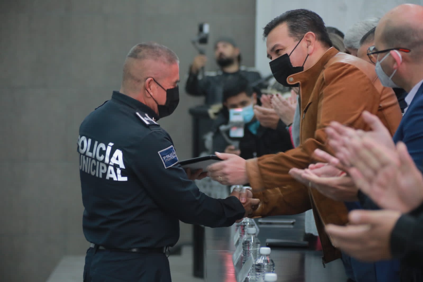 “Sepan que, de parte del presidente Municipal, del secretario de Seguridad Pública, del honorable Ayuntamiento, tienen ustedes aliados que los van a estar apoyando en la medida de nuestras posibilidades y en la medida que la gente de Juárez nos de más su confianza, nosotros vamos a venir a entregar también esa confianza a ustedes, a mejorar los reconocimientos, los estímulos”, manifestó.
