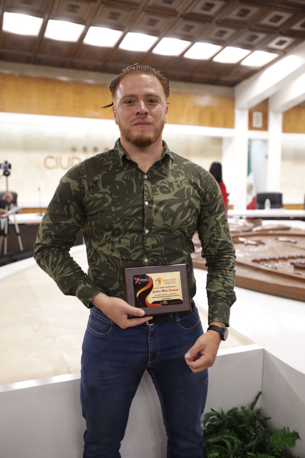 Juárez.- Los deportistas juarenses que destacaron durante el año pasado, recibieron este día un reconocimiento en sesión solemne de Cabildo; uno de los homenajeados fue Alan ”Cachorro” Solís, Deportista del año 2022, a quien se le entregó la estatuilla Agustín “Cheche” Álvarez por parte del Presidente Municipal, Cruz Pérez Cuéllar.