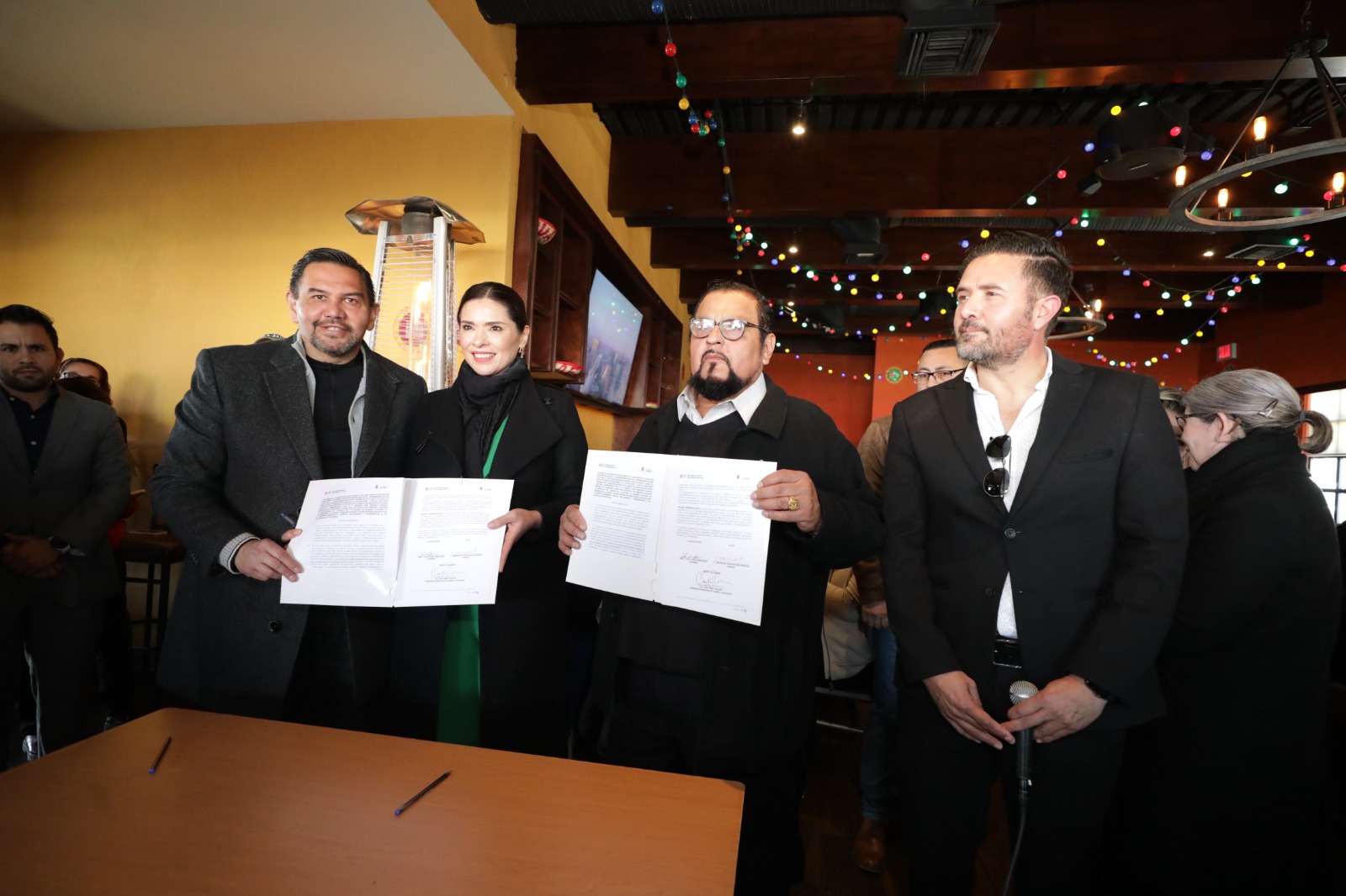 Juárez.- El presidente municipal, Cruz Pérez Cuéllar, firmó como testigo de un convenio de colaboración entre el Sistema para el Desarrollo Integral de la Familia del Municipio (DIF) y la Unión de Directores de Educación Básica.