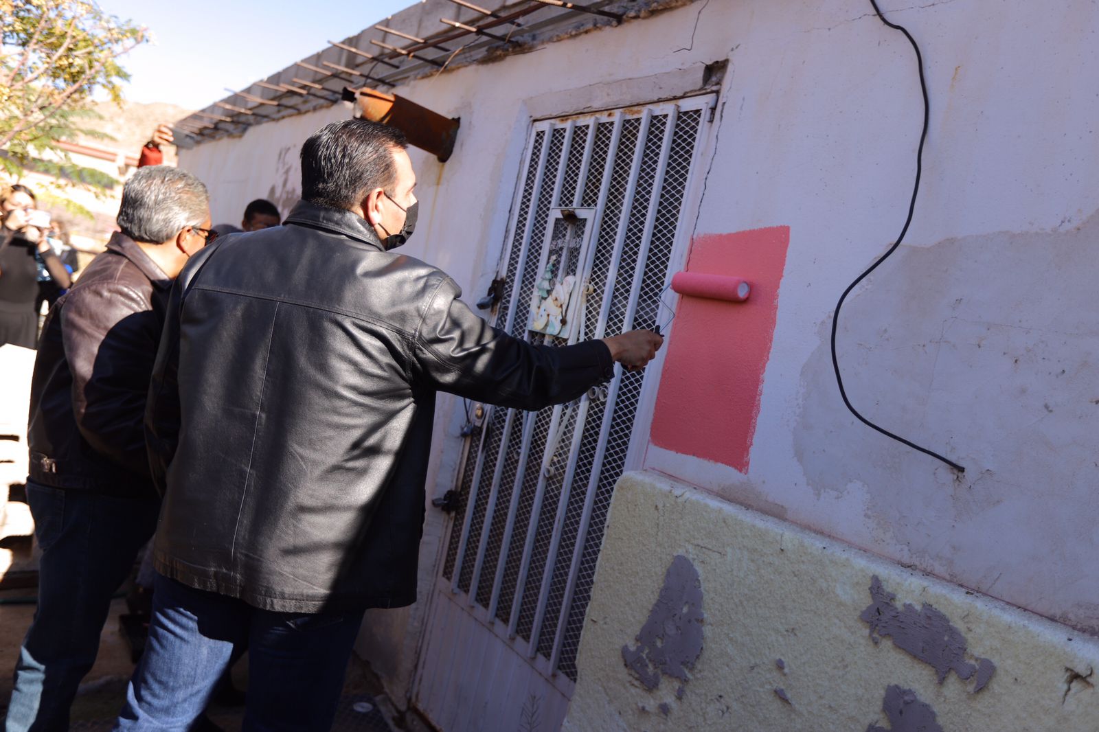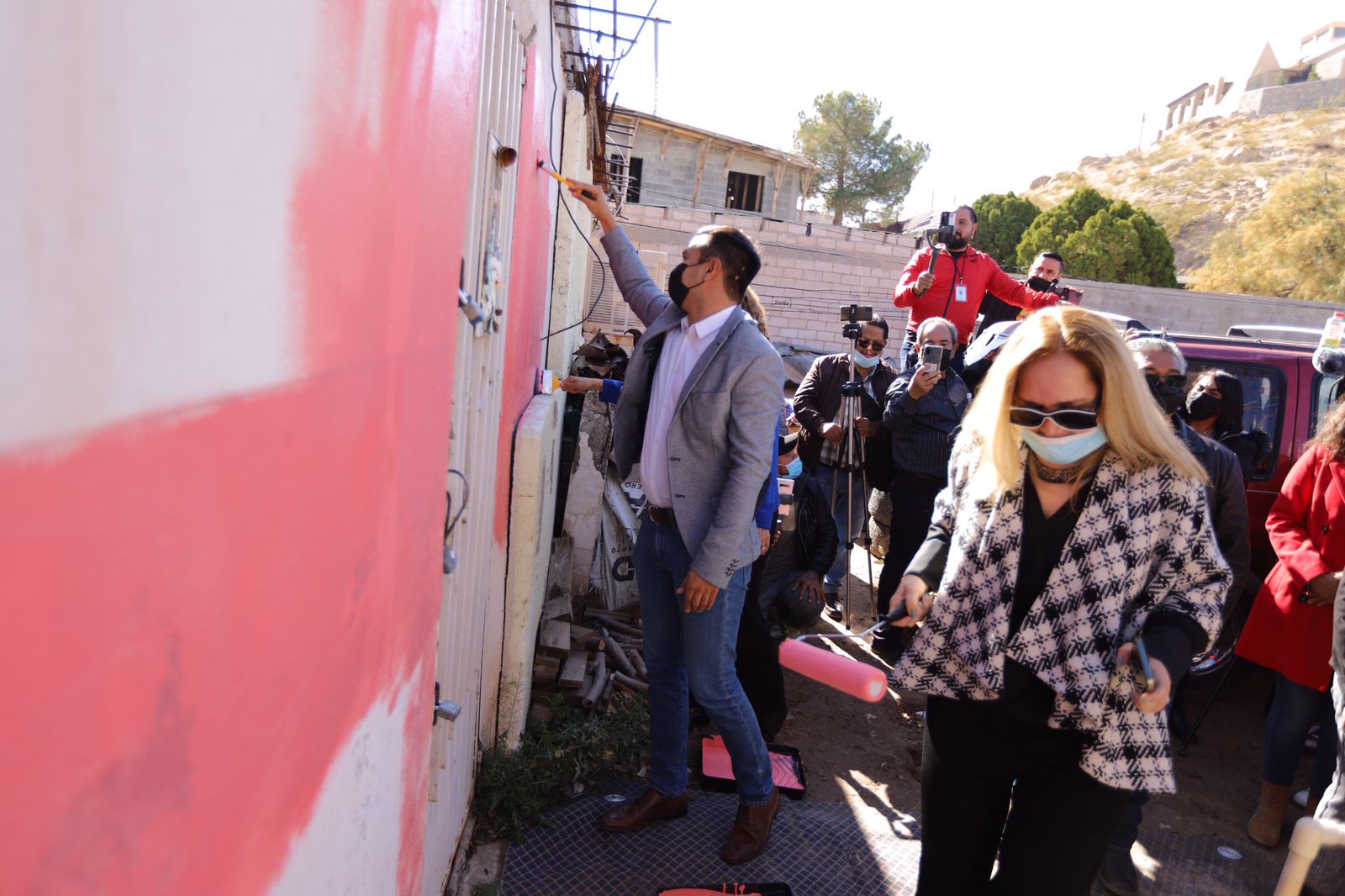 El alcalde y funcionarios municipales pintaron la primera casa de este programa, localizada a unos metros del río Bravo, aunque la idea es involucrar a los vecinos para que pinten sus viviendas.