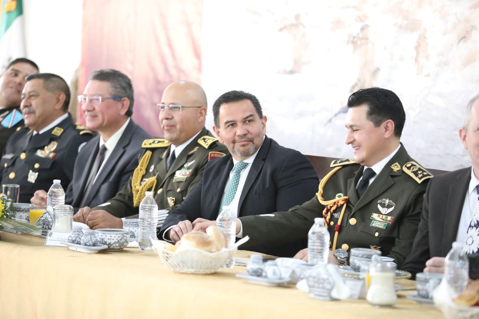 Como parte de la celebración por el Día del Ejército Mexicano, los militares disfrutaron de un desayuno, escucharon la Plegaria del Soldado, cantaron el Himno Nacional y se llevó a cabo una rifa para los elementos del Noveno Regimiento de Caballería Motorizado.