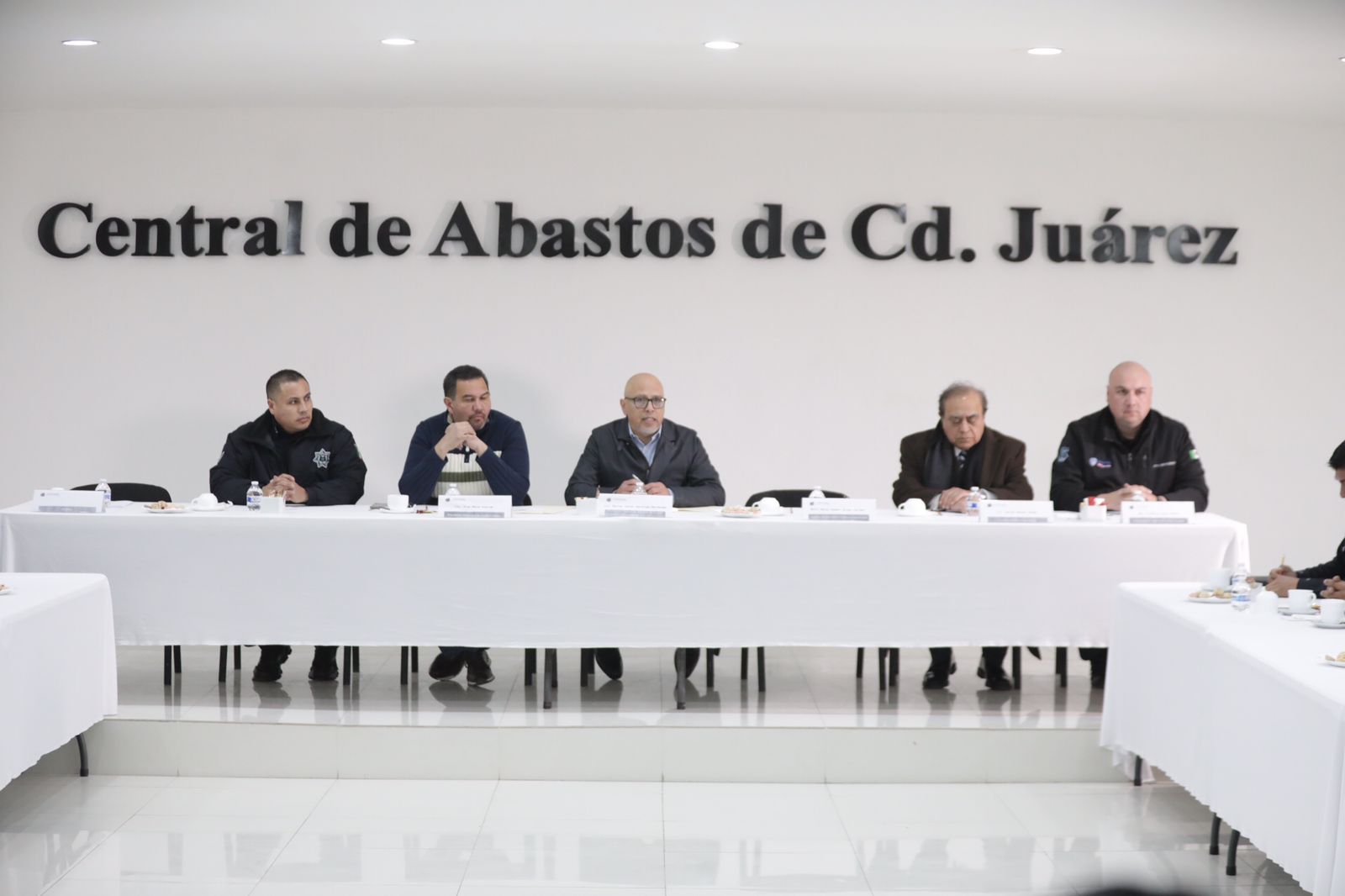Juárez.- Con la intención de que la Central de Abastos siga siendo un espacio seguro para la ciudadanía, este día se llevó a cabo en este lugar la reunión Bimestral de la Mesa de Seguridad, encabezada por el Presidente Municipal, Cruz Pérez Cuéllar.