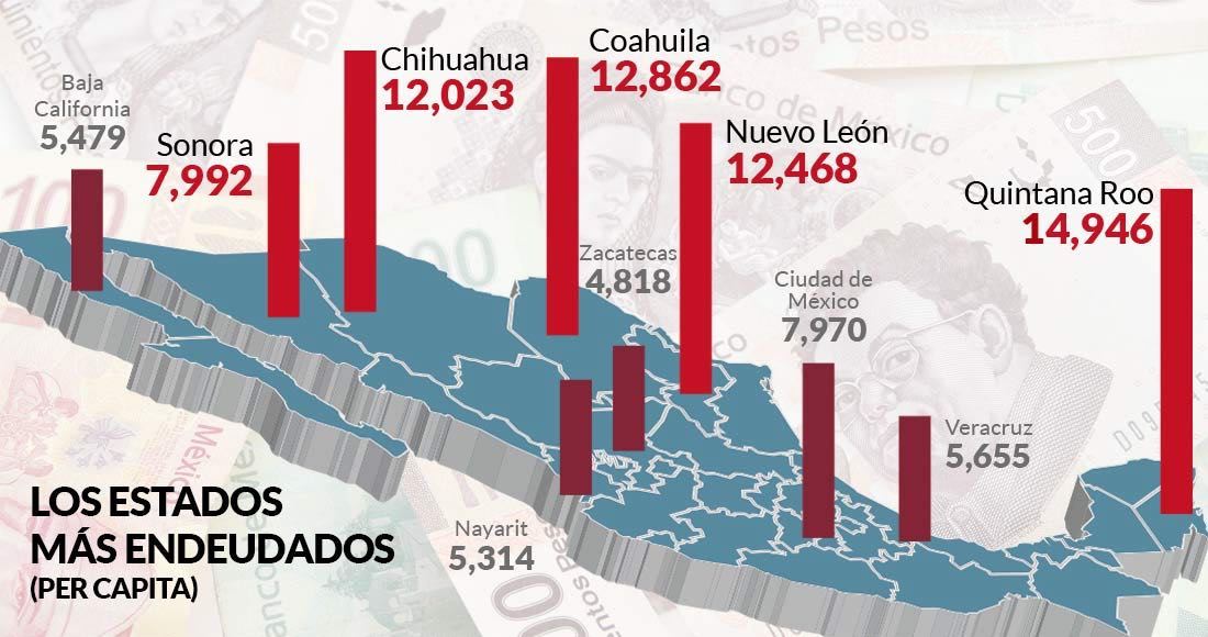 Los estados de Coahuila, Chihuahua, Nuevo León y Quintana Roo tienen el grado de endeudamiento más preocupante de las 32 entidades federativas a nivel nacional.