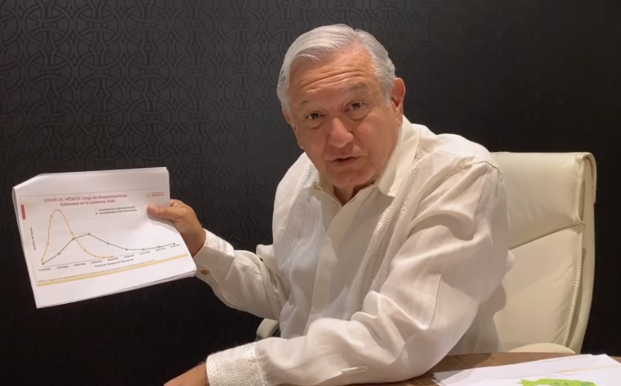“Necesitamos seguir manteniendo esa relación económica esta relación comercial. Podemos ir a comprar al tianguis, a los mercados, también con cuidado, podemos seguir desplazándonos para lo fundamental, no salir a la calle sin que haya algo verdaderamente necesario que nos obligue a salir, lo mejor es quedarnos, vamos a aguantar, vamos a mantener este retiro que nos va a ayudar mucho, porque miren, me mandaron esta gráfica, así lo explico de manera sencilla, si no nos cuidamos, si no nos retiramos a nuestras casas, entonces puede pasar”, advirtió.
