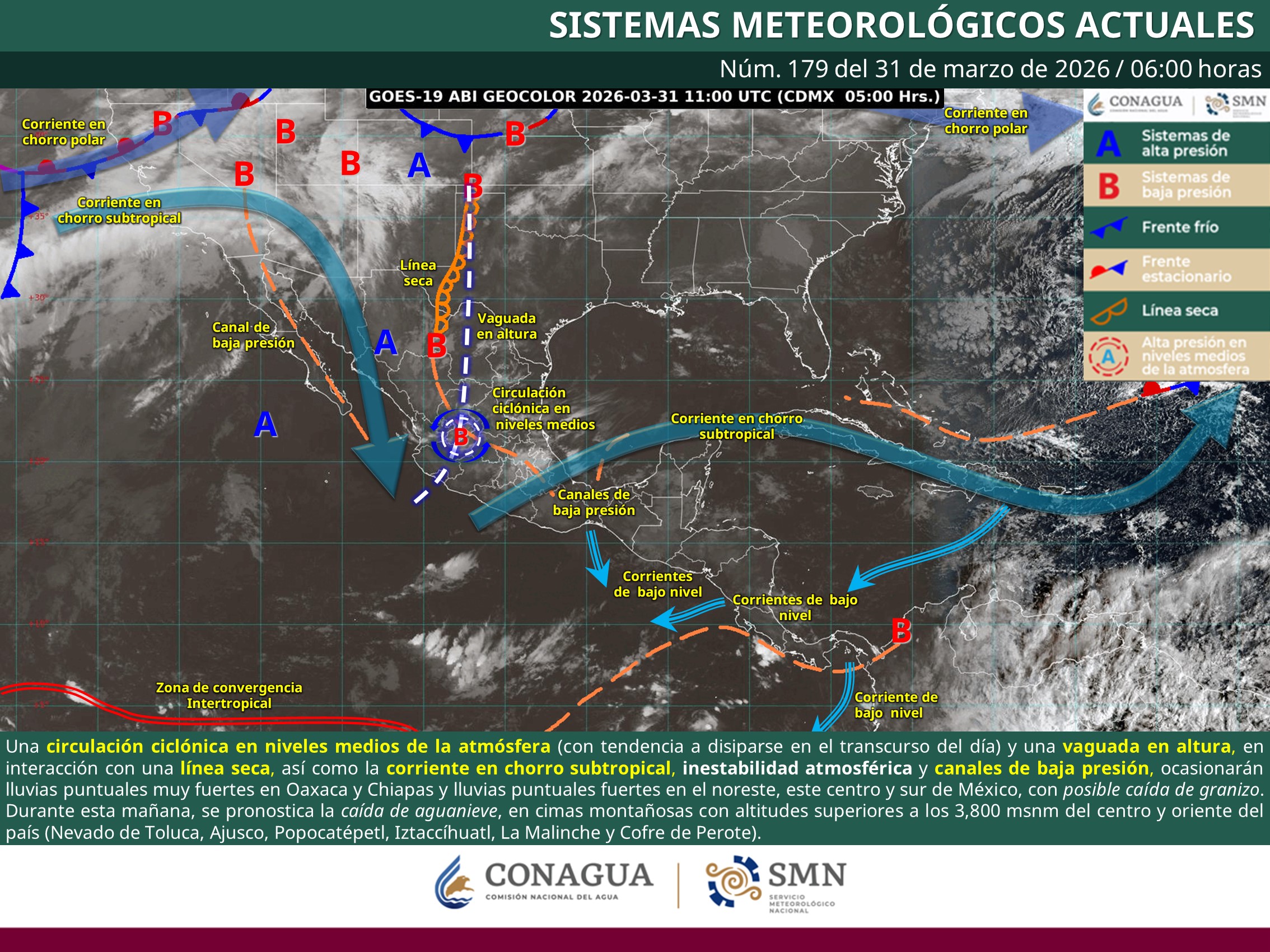 Chihuahua.- Una vaguada en altura sobre el centro y noreste del país, en interacción con una línea seca en el norte del país ocasionará favorecerá a que se registre una tarde calurosa con temperaturas máximas que podrían superar los 30ºC este martes 31 de marzo de 2026.
