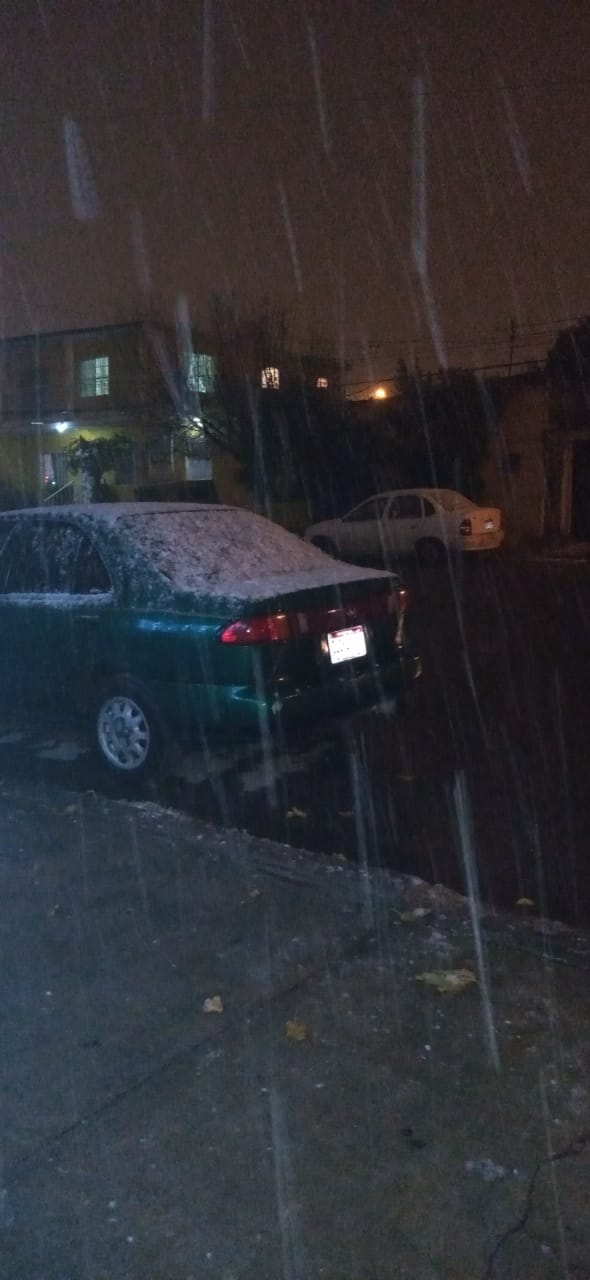 La noche de este jueves se registró la primera nevada del año para la ciudad de Chihuahua, iniciando con plumeos al norte de la capital.