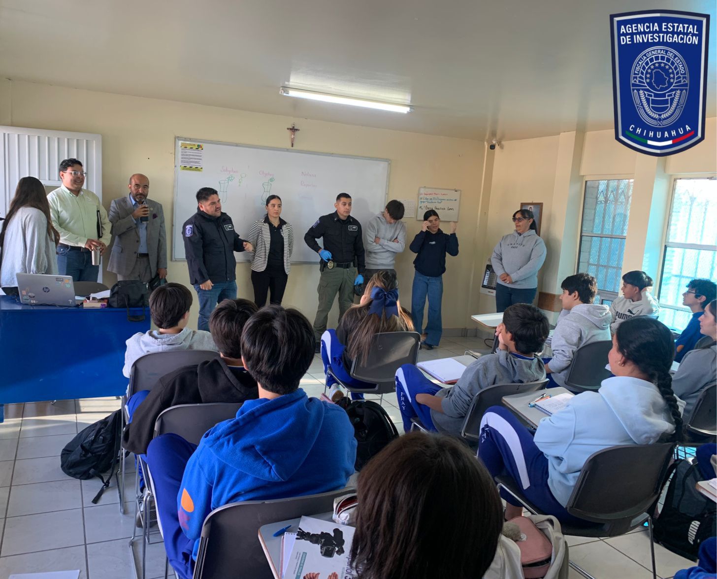 Nuevo Casas Grandes.- Como parte de las acciones de combate a los delitos, elementos de la Agencia Estatal de Investigación, adscritos al Grupo de Orientación Escolar Chihuahuense (GOECHI), implementaron el programa “Intervención para la prevención y protección de la seguridad de la comunidad educativa”.