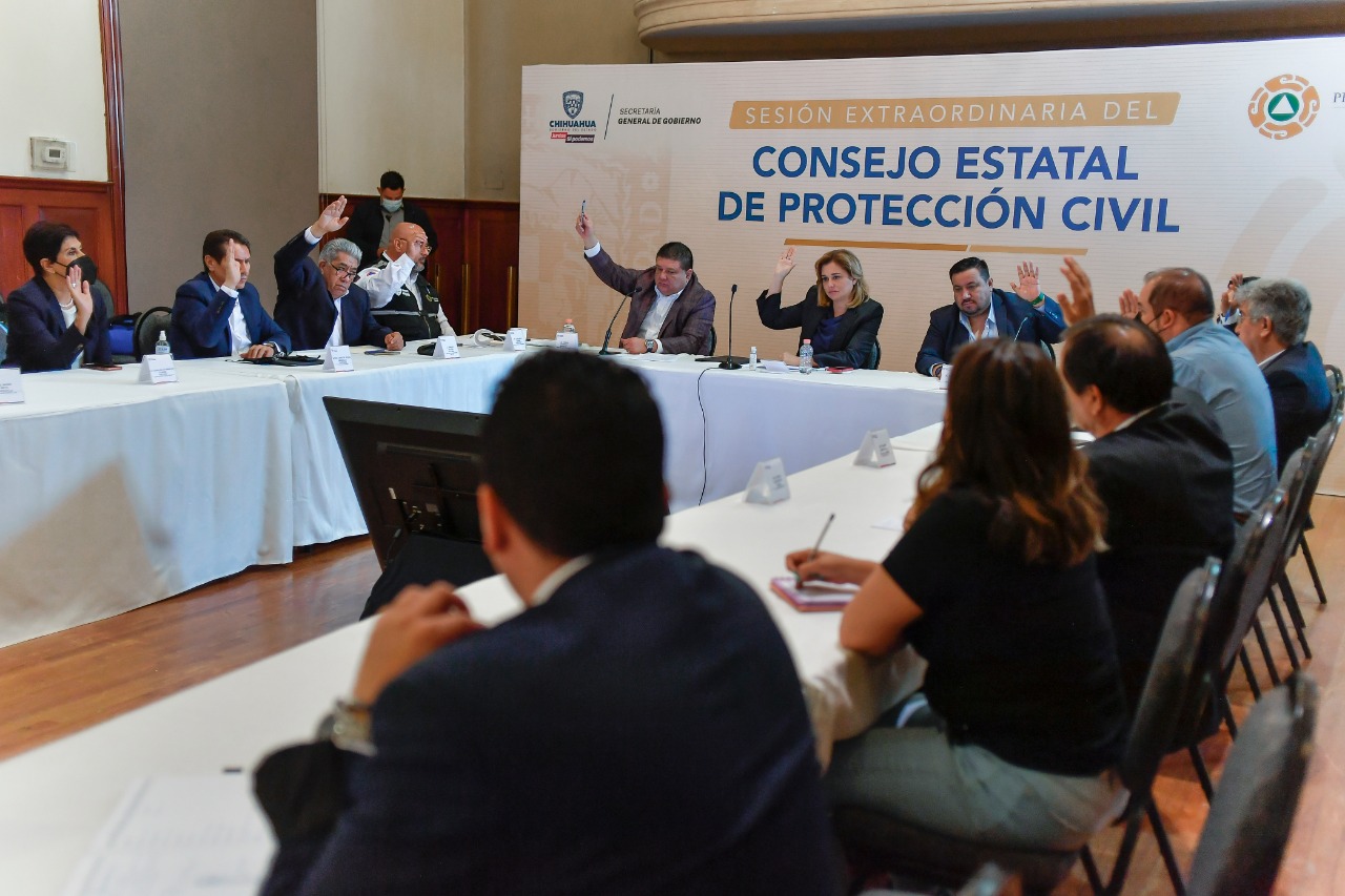 Chihuahua.- La gobernadora Maru Campos Galván encabezó la Tercera Sesión Ordinaria del Consejo Estatal de Protección Civil, en donde destacó que ante la emergencia por las lluvias el primer acuerdo es proteger a la gente en las comunidades y municipios, proveer alimento, agua potable y que tengan una vivienda segura.