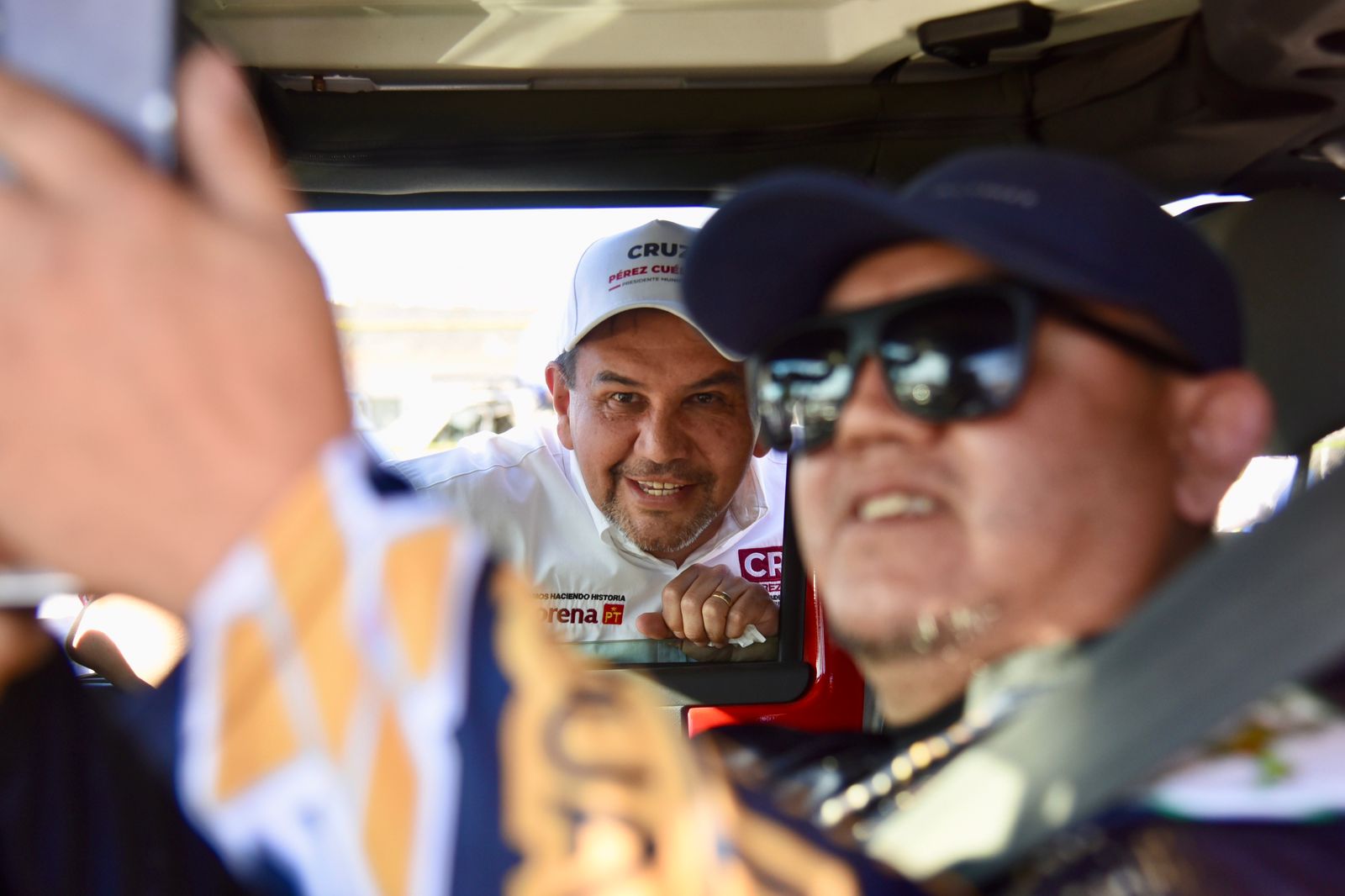 Pérez Cuéllar interactuó con los ciudadanos, invitándolos a votar por su proyecto, y la respuesta ha sido ampliamente positiva, reflejada en la colocación de calcomanías en los vehículos y en las fotografías junto al candidato.