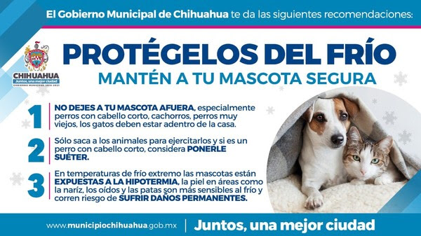 El Gobierno Municipal a través de la Dirección de Desarrollo Urbano y Ecología emite las siguientes recomendaciones para el cuidado de mascotas que se tengan en casa ante las bajas temperaturas del invierno.