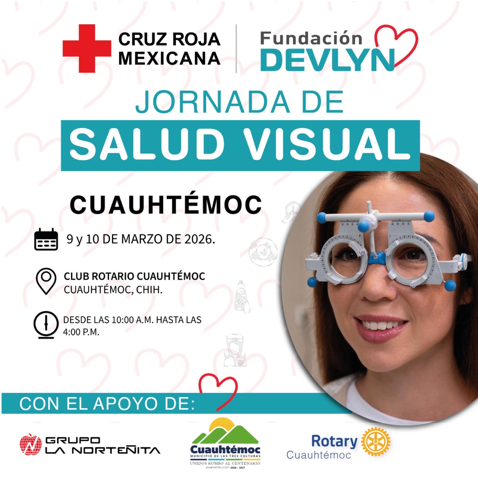 Cuauhtémoc.- Jornada de Salud Visual en Cuauhtémoc los días 9 y 10 de marzo de 2026, en las instalaciones del Club Rotario Cuauhtémoc, en un horario de 10:00 a.m. a 4:00 p.m.