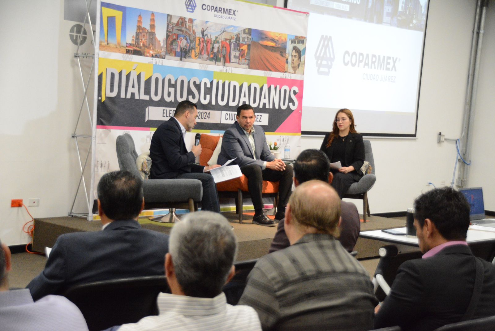 Juárez.- El candidato a la alcaldía por la coalición “Sigamos Haciendo Historia por Chihuahua”, Cruz Pérez Cuéllar, participó activamente en los “Diálogos Ciudadanos” Elecciones 2024, un evento organizado por la Confederación Patronal de la República Mexicana (COPARMEX).